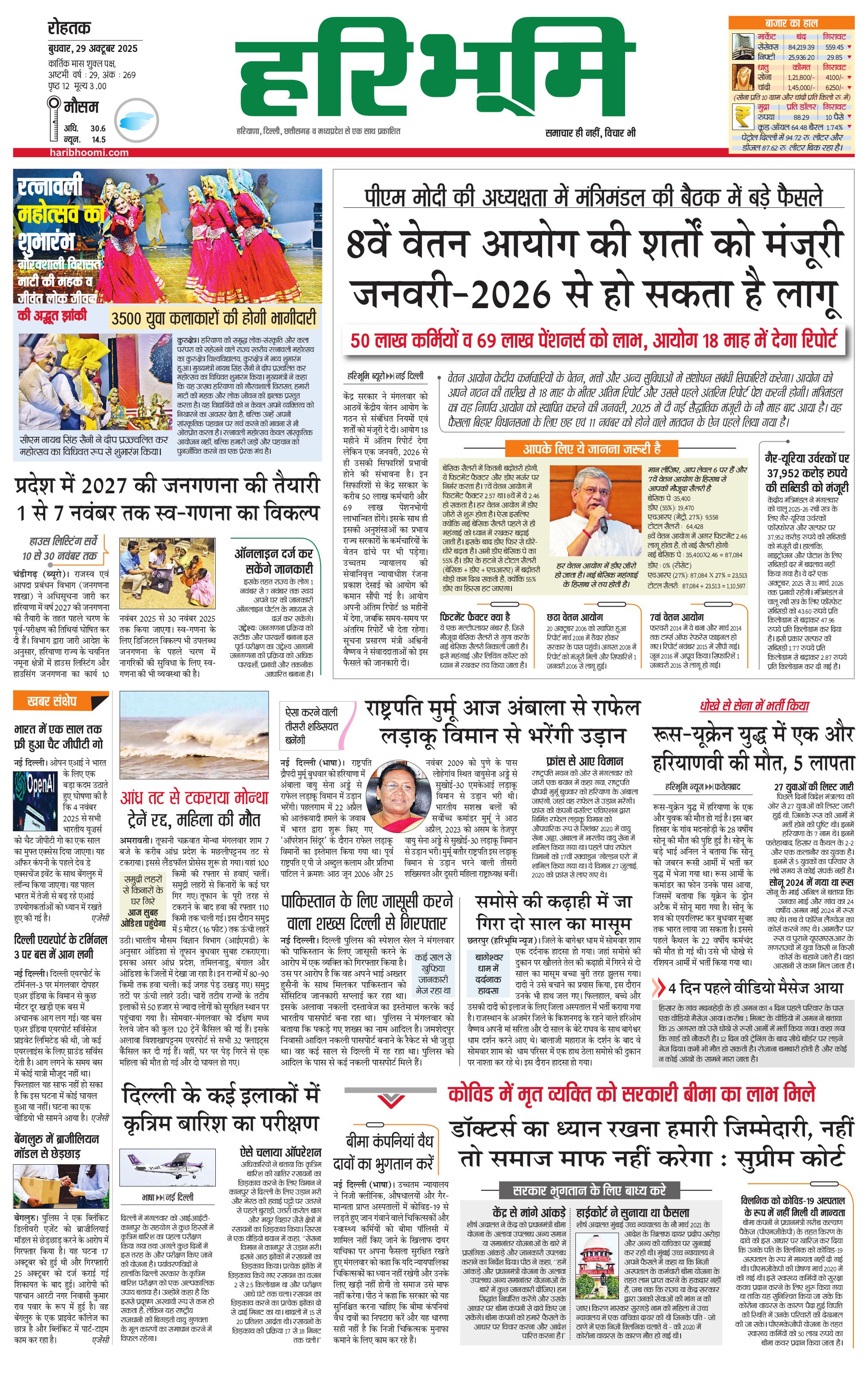 रोहतक मुख्य संस्करण - 29 Oct 2025 - - Page 1