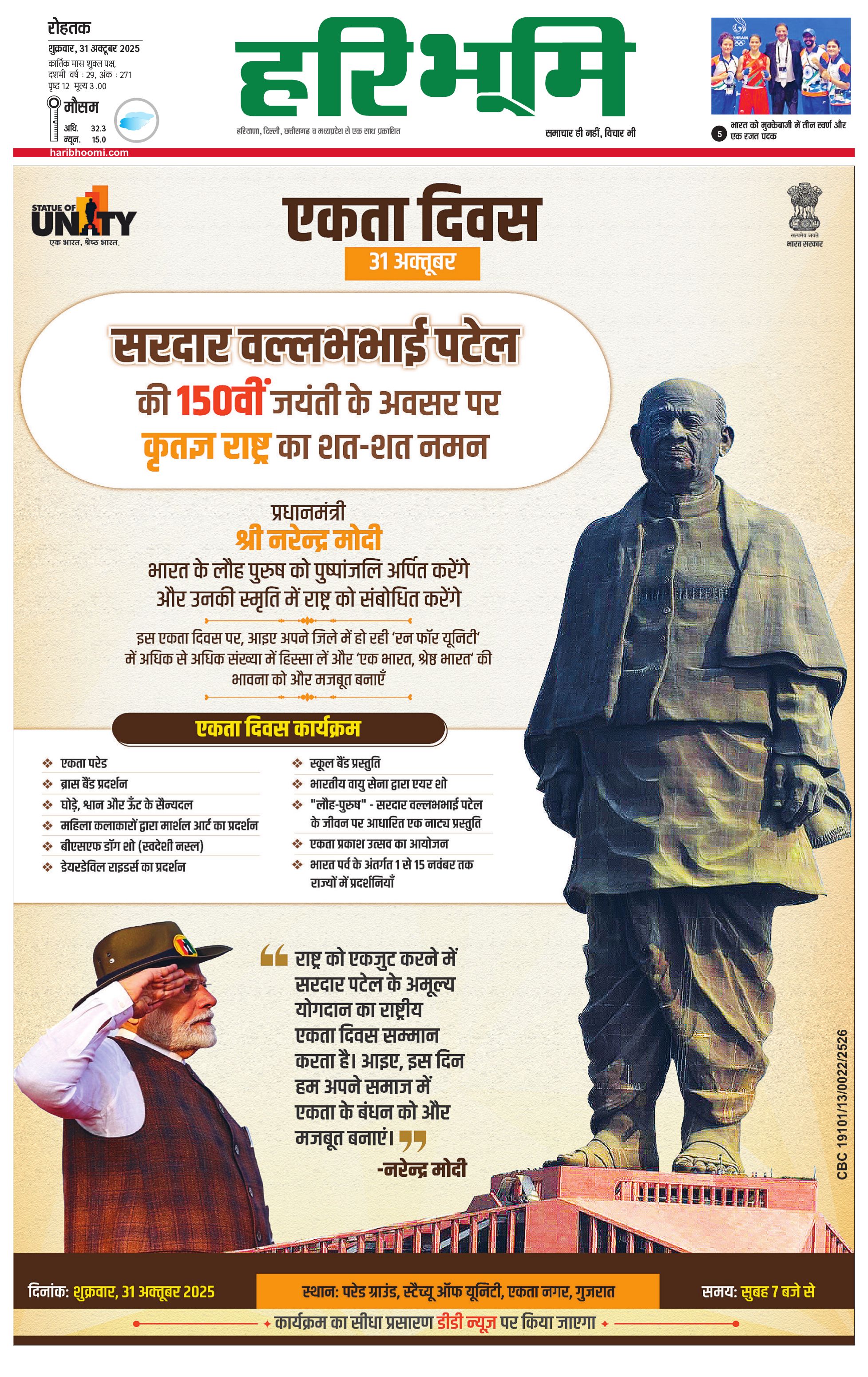 रोहतक मुख्य संस्करण - 31 Oct 2025 - - Page 1