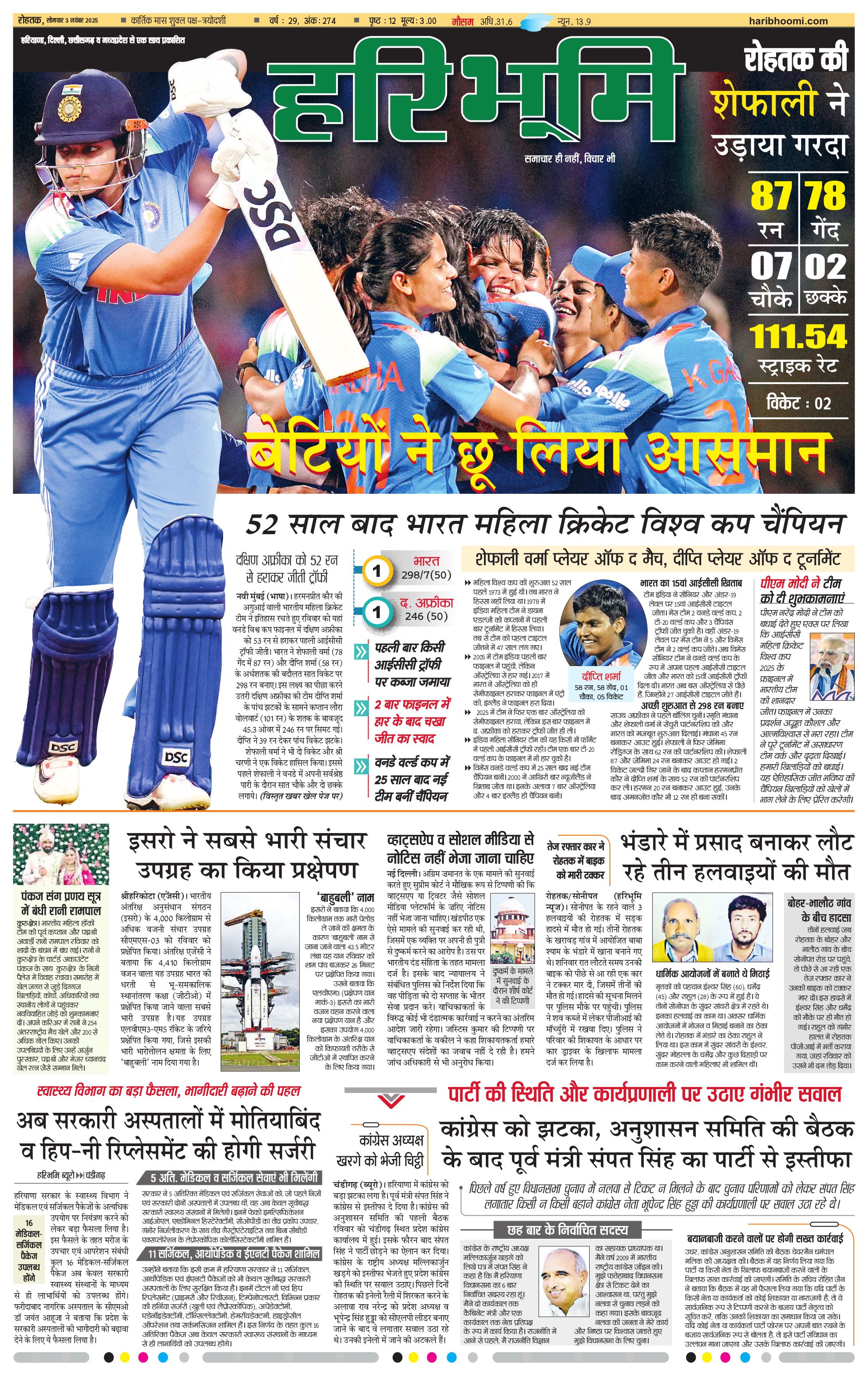 रोहतक मुख्य संस्करण - 03 Nov 2025 - - Page 1
