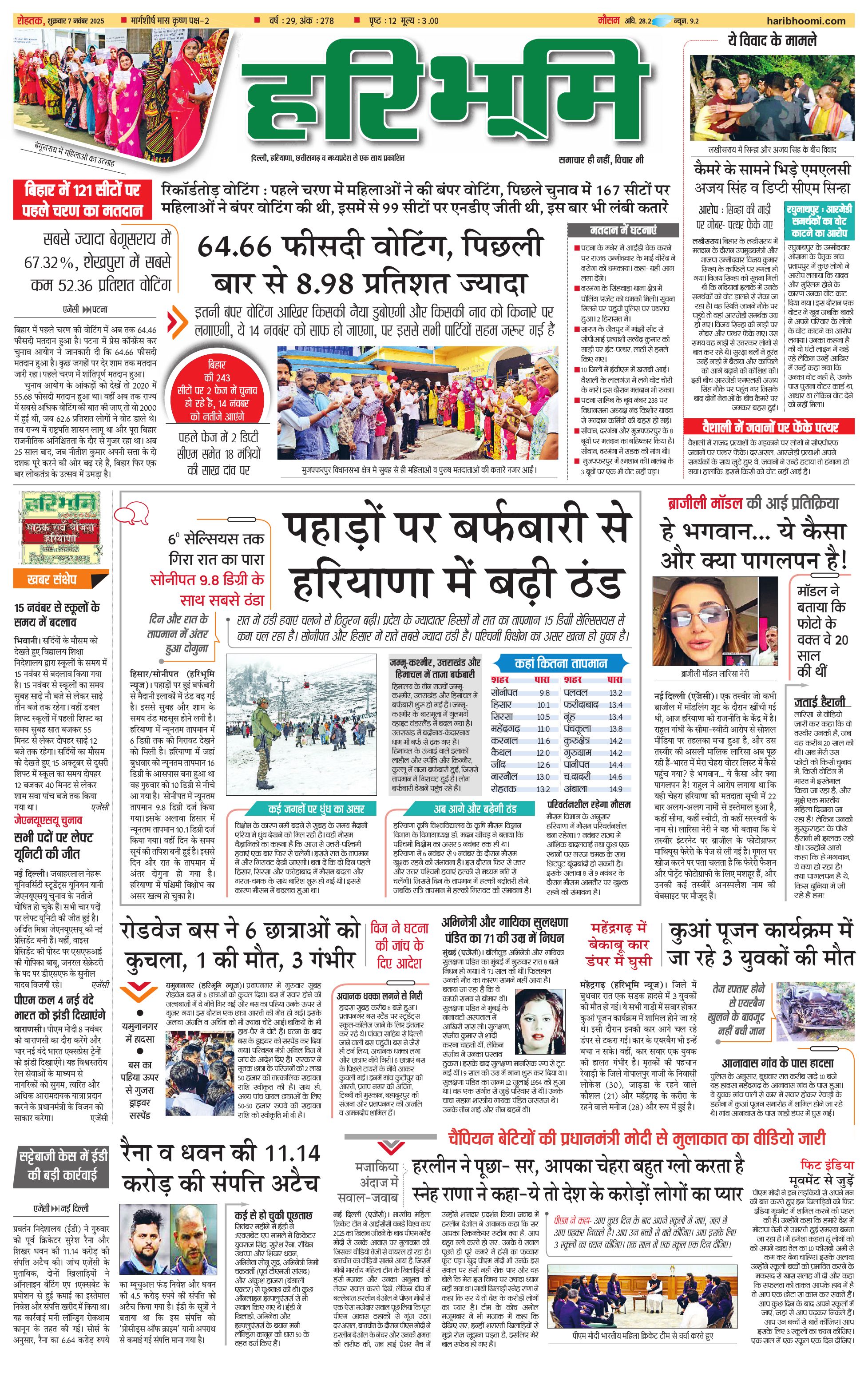 रोहतक मुख्य संस्करण - 07 Nov 2025 - - Page 1