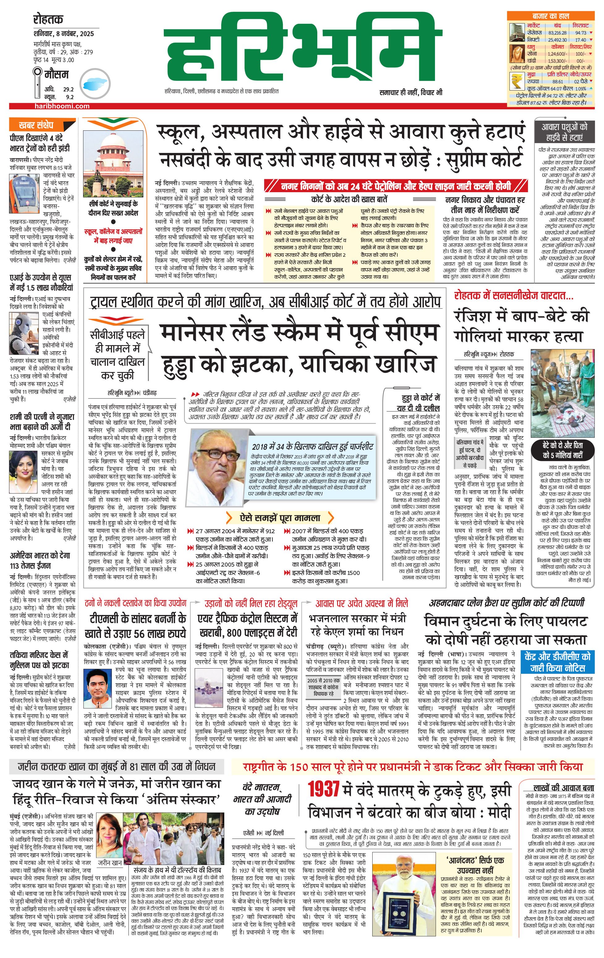 रोहतक मुख्य संस्करण - 08 Nov 2025 - - Page 1
