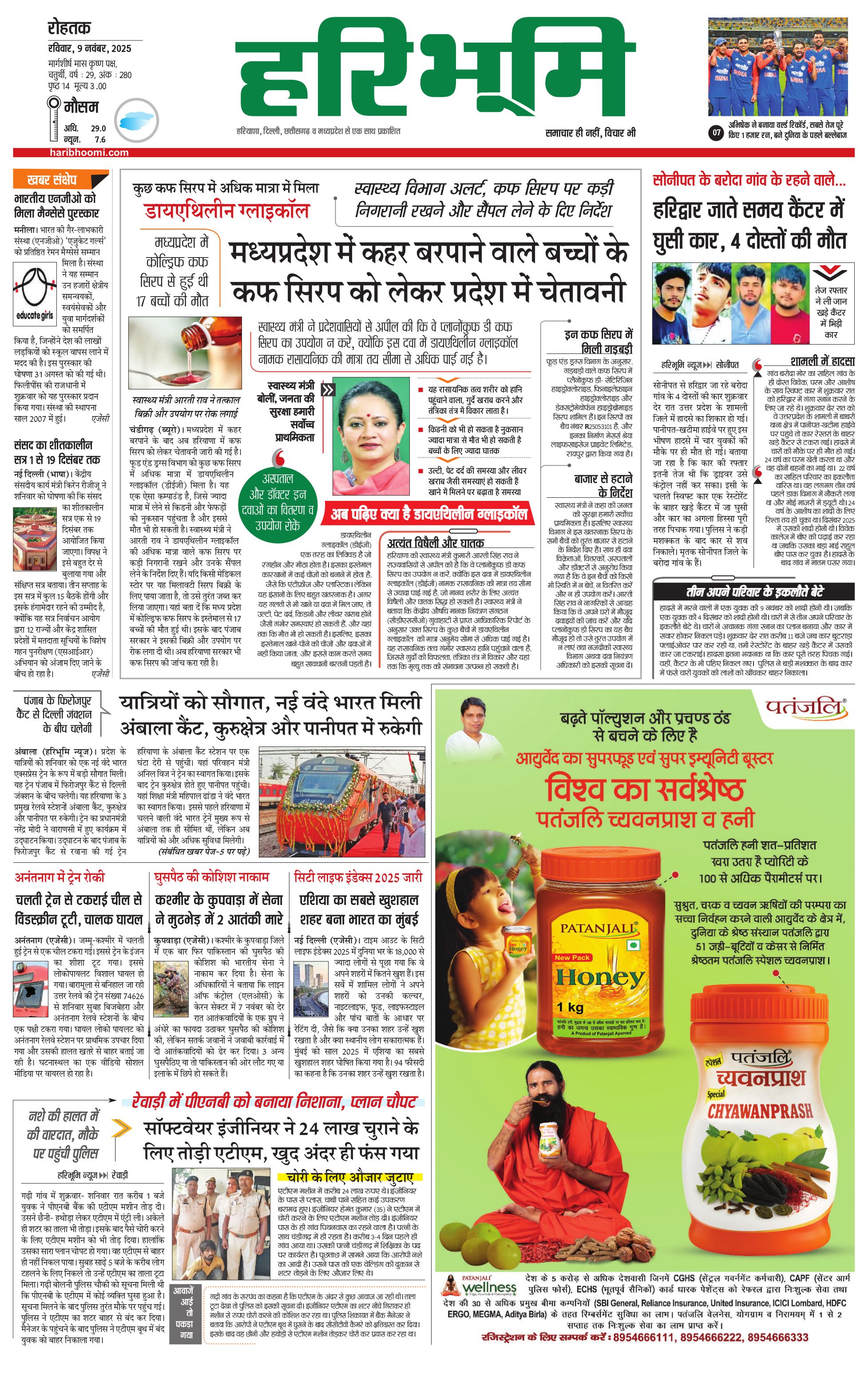 रोहतक मुख्य संस्करण - 09 Nov 2025 - - Page 1