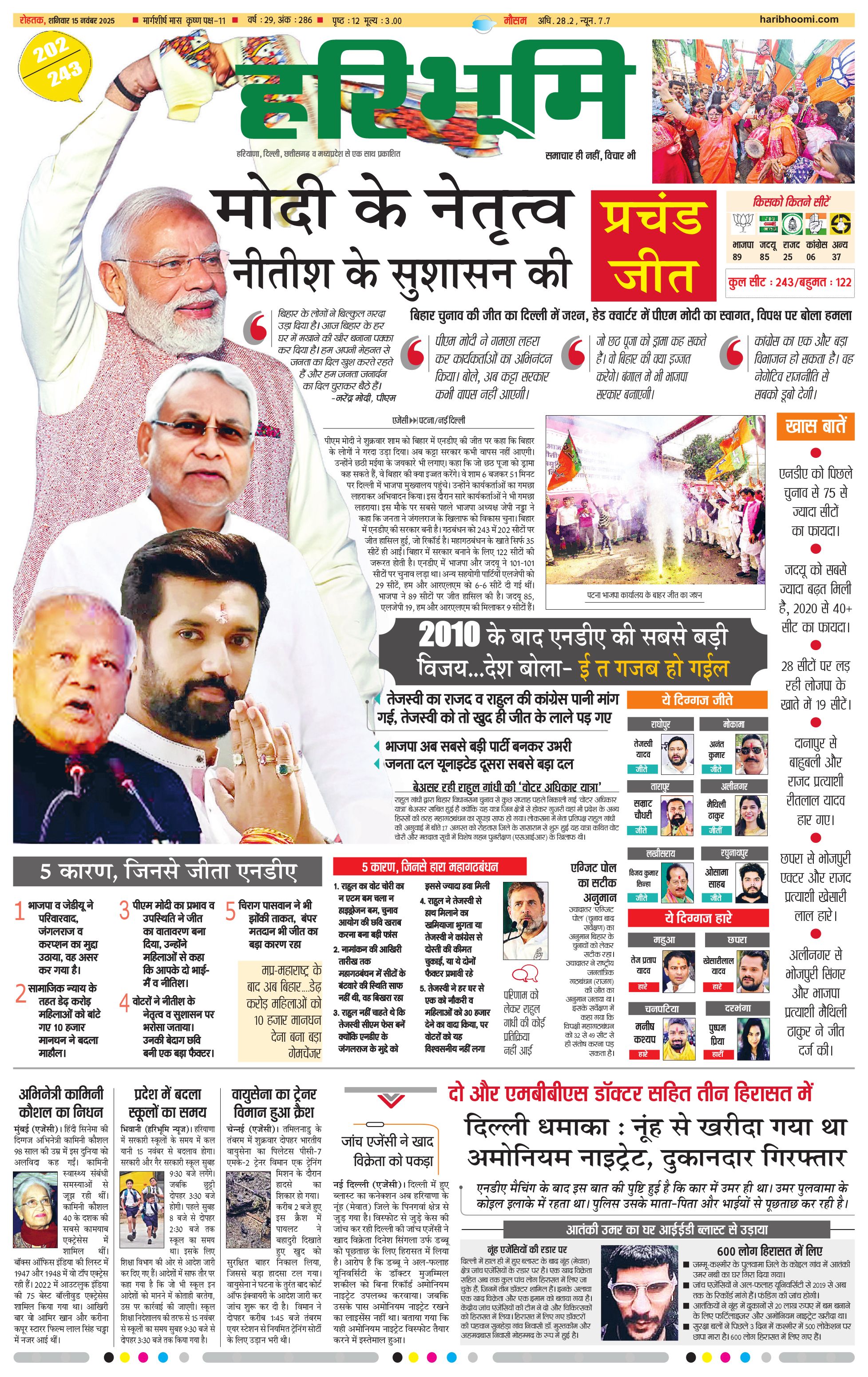 रोहतक मुख्य संस्करण - 15 Nov 2025 - - Page 1