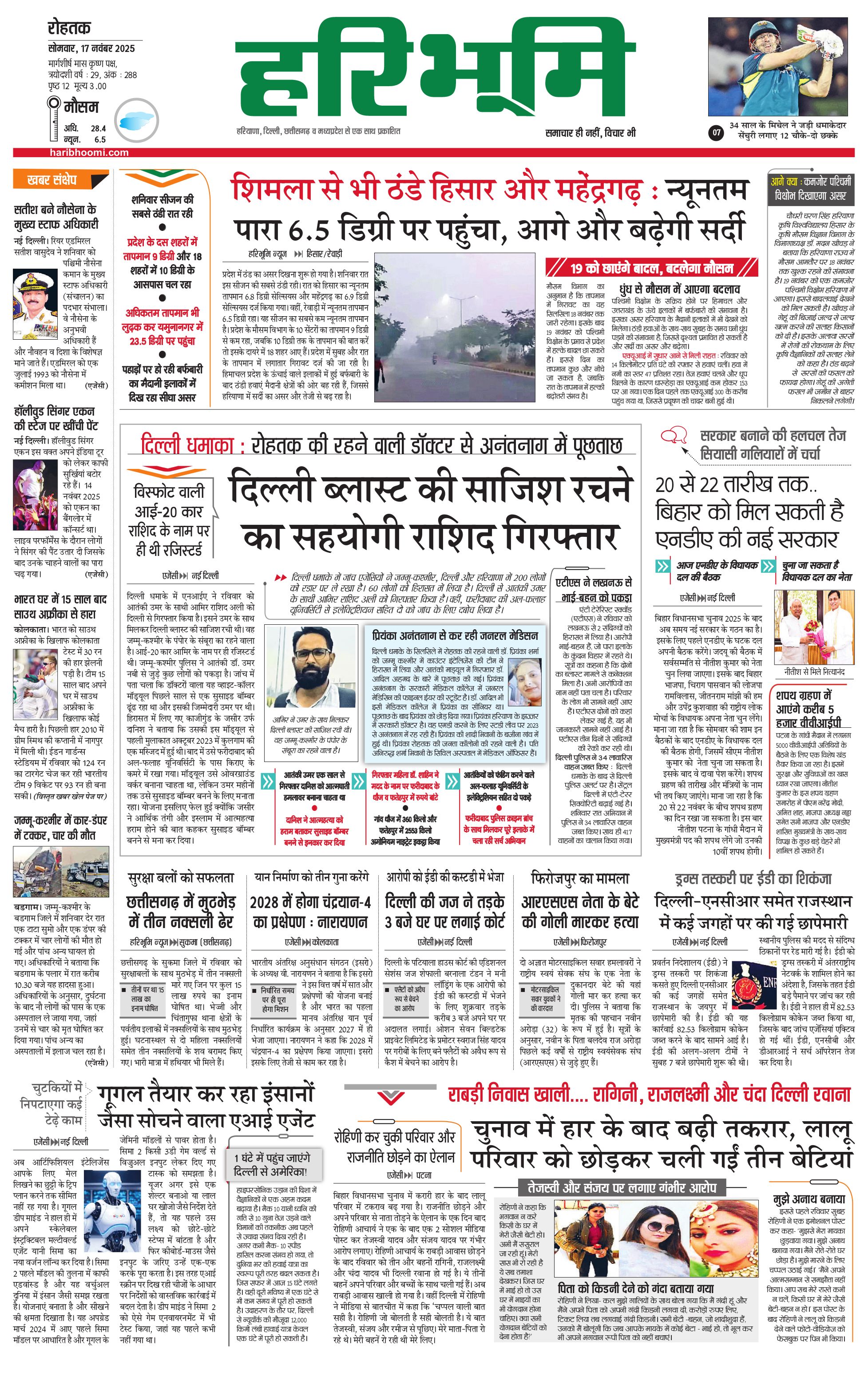 रोहतक मुख्य संस्करण - 17 Nov 2025 - - Page 1