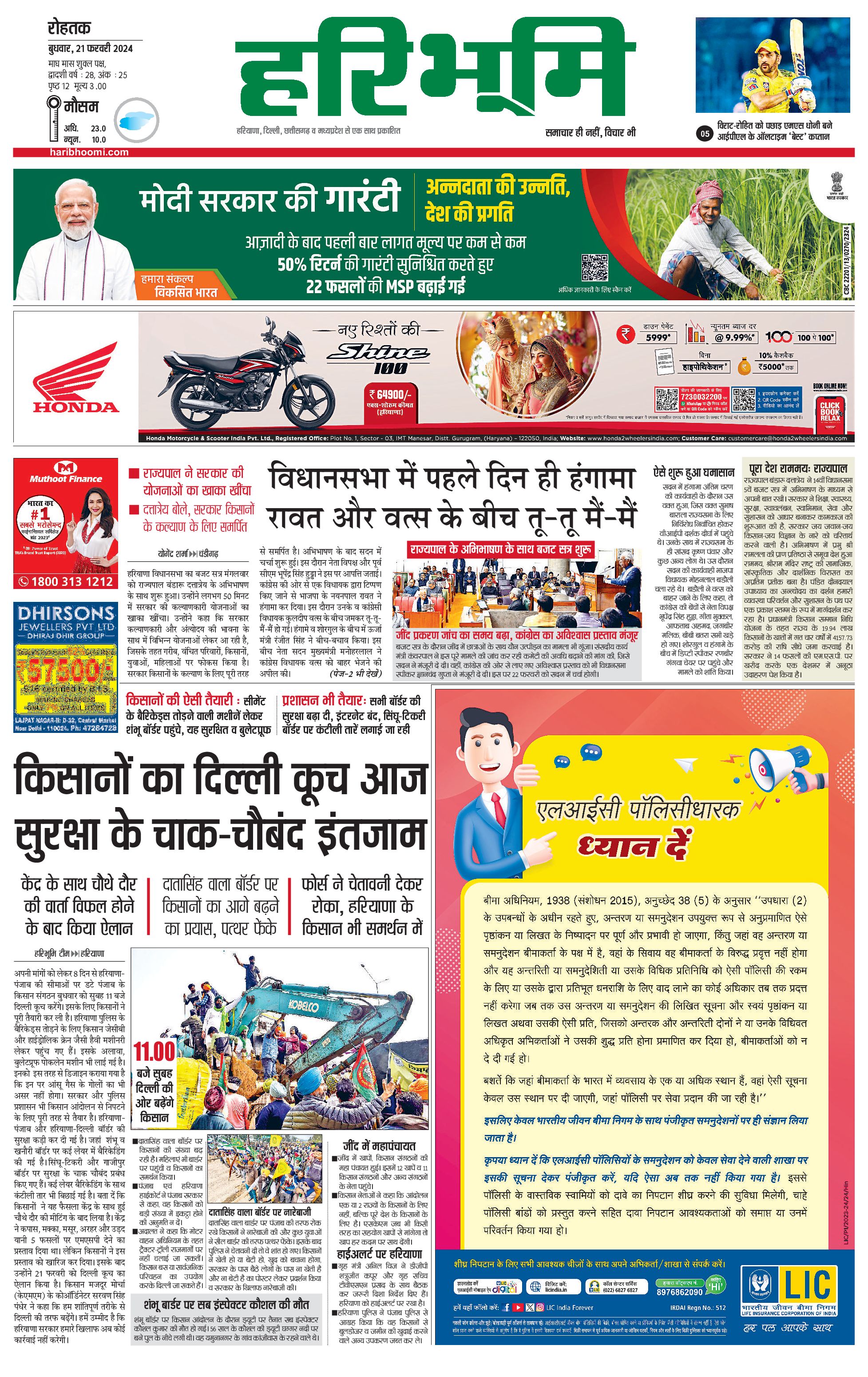 रोहतक मुख्य संस्करण - 21 Feb 2024 - - Page 1