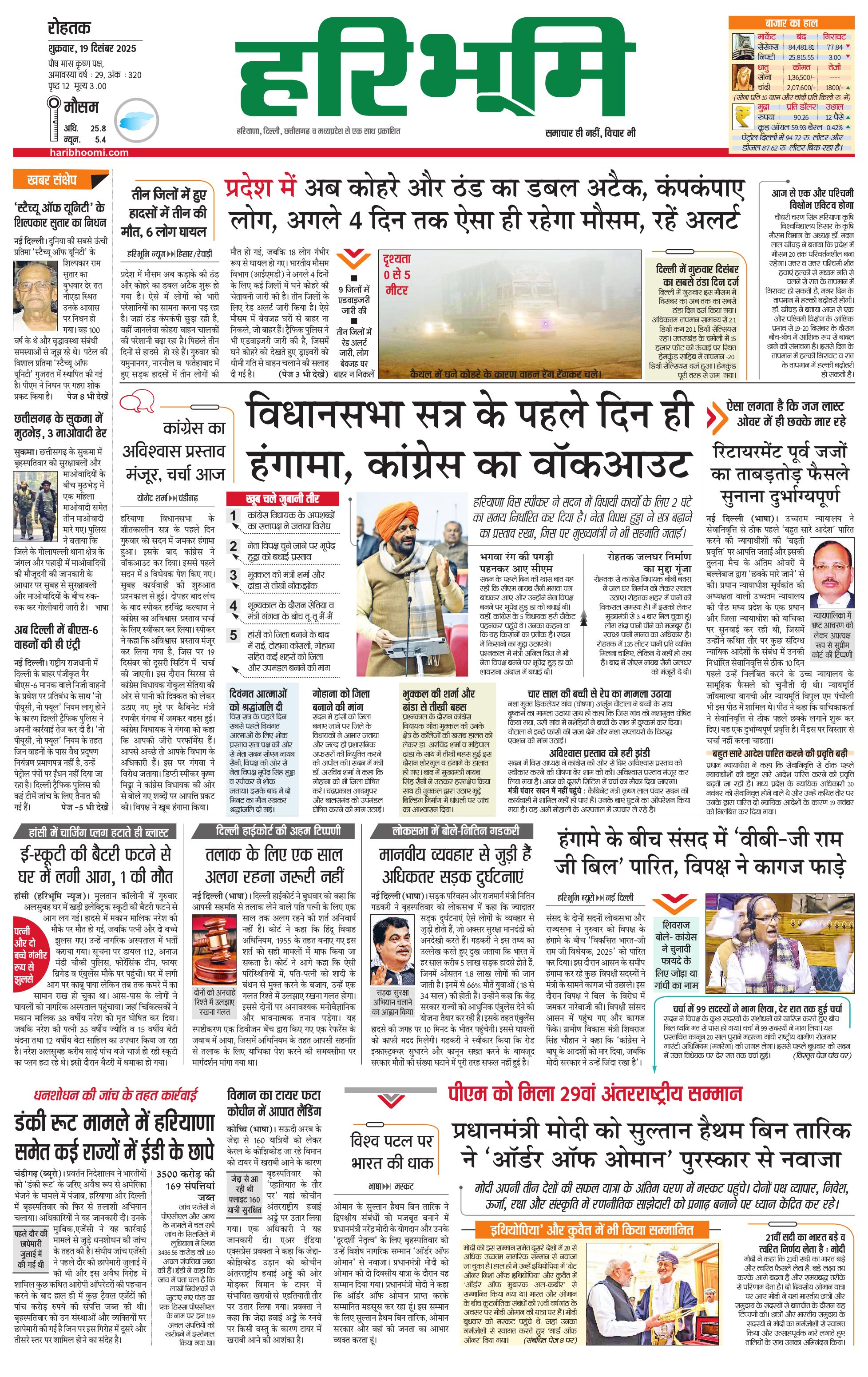 रोहतक मुख्य संस्करण - 19 Dec 2025 - - Page 1