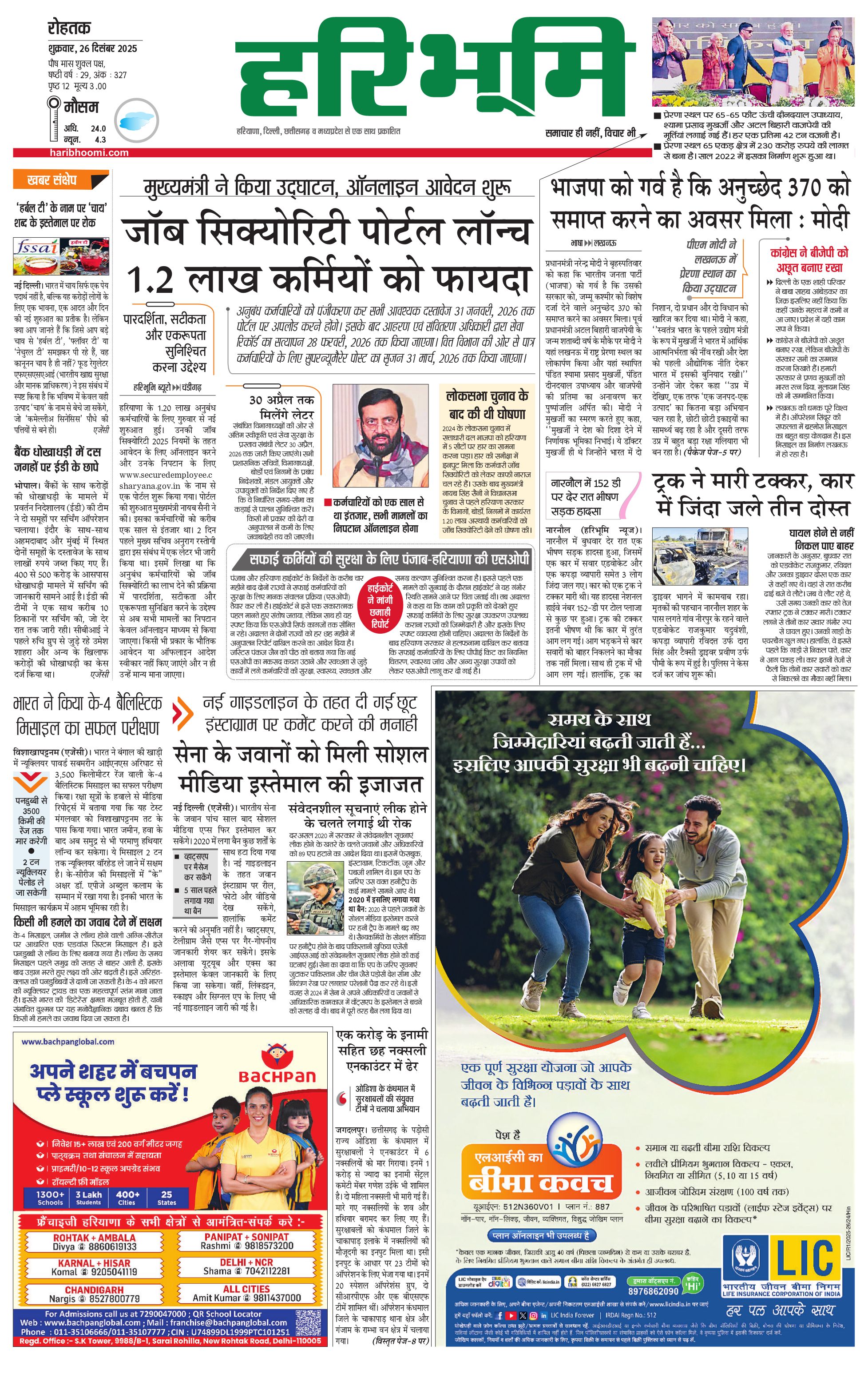 रोहतक मुख्य संस्करण - 26 Dec 2025 - - Page 1