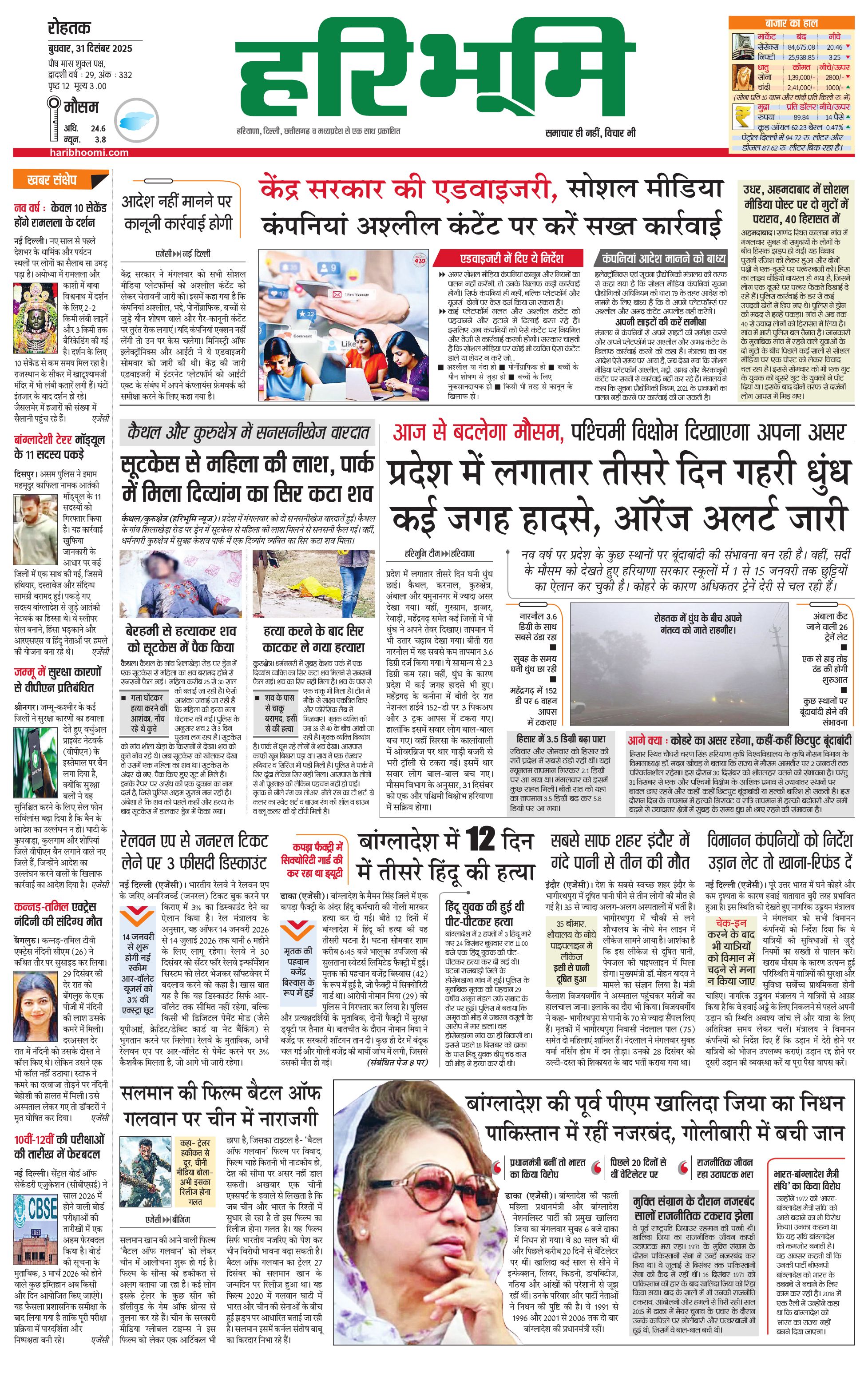 रोहतक मुख्य संस्करण - 31 Dec 2025 - - Page 1