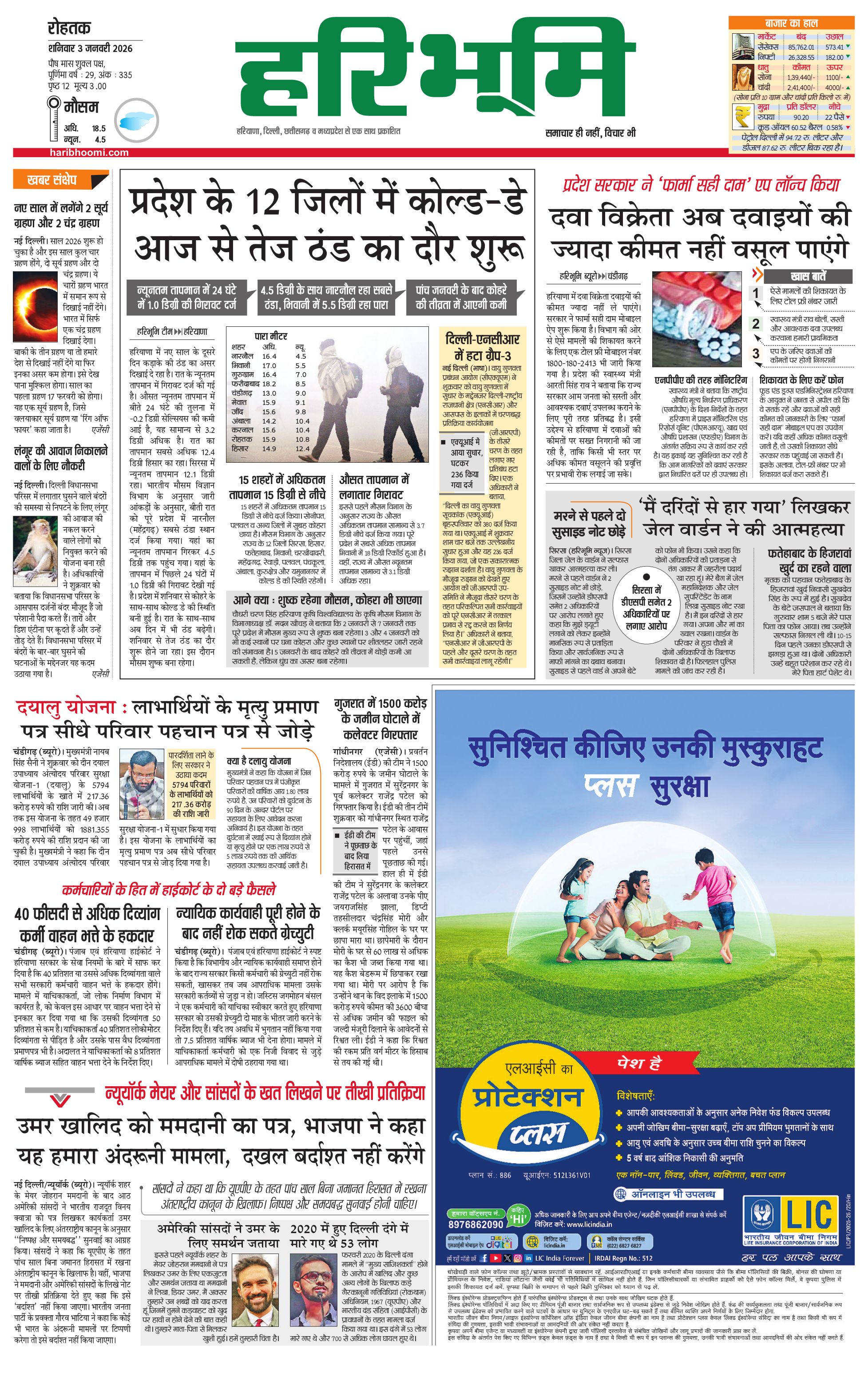 रोहतक मुख्य संस्करण - 03 Jan 2026 - - Page 1