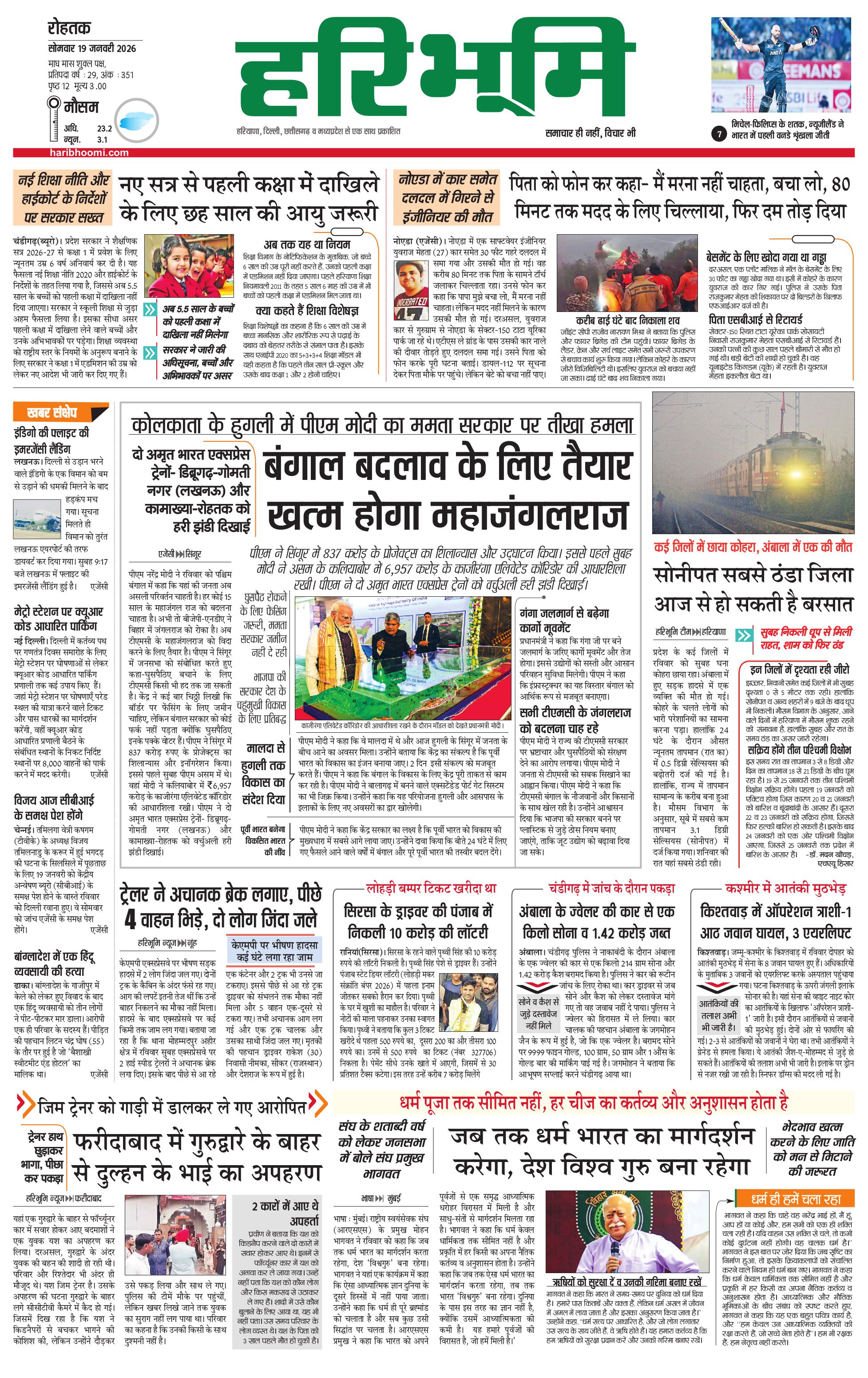 रोहतक मुख्य संस्करण - 19 Jan 2026 - - Page 1