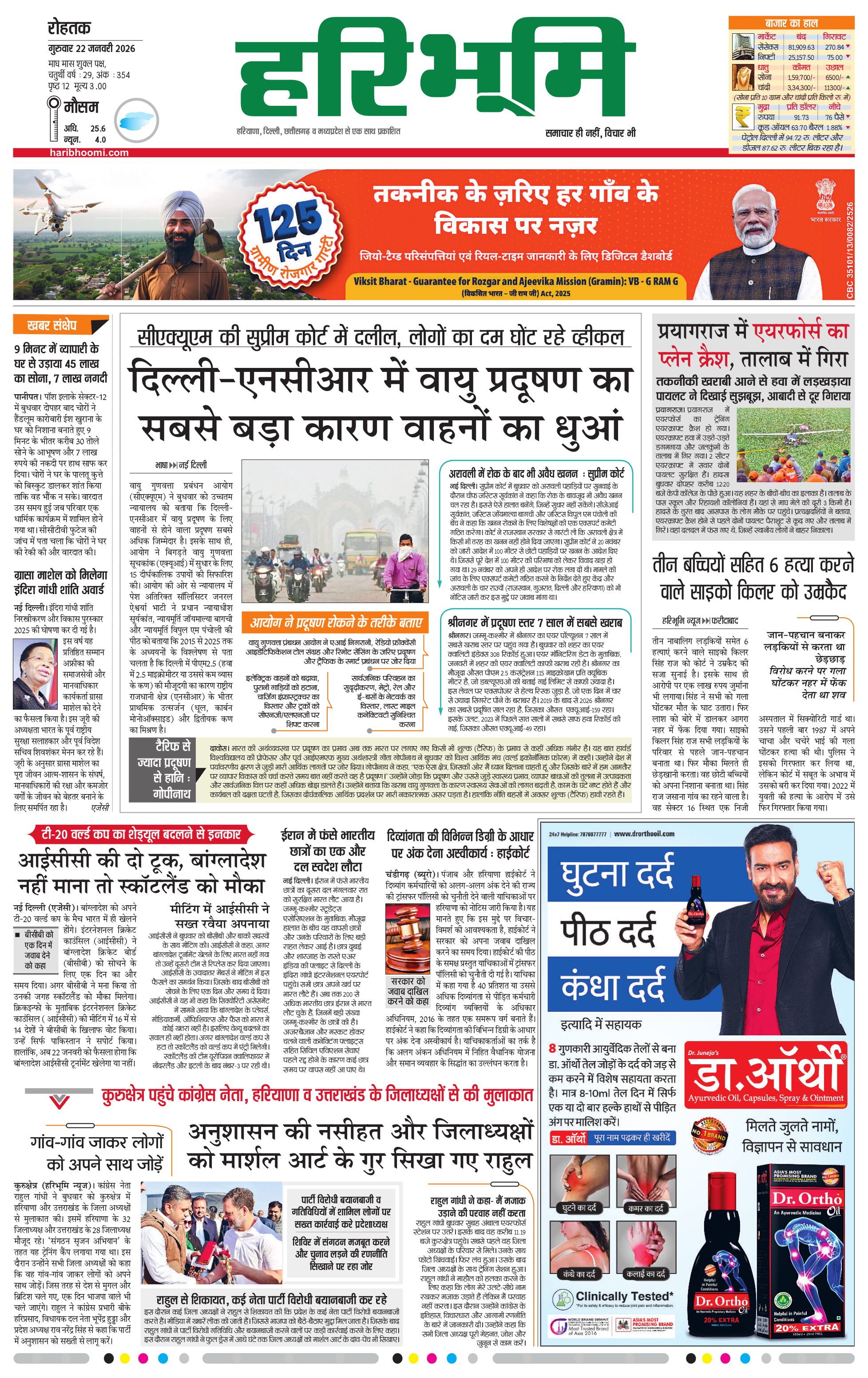 रोहतक मुख्य संस्करण - 22 Jan 2026 - - Page 1