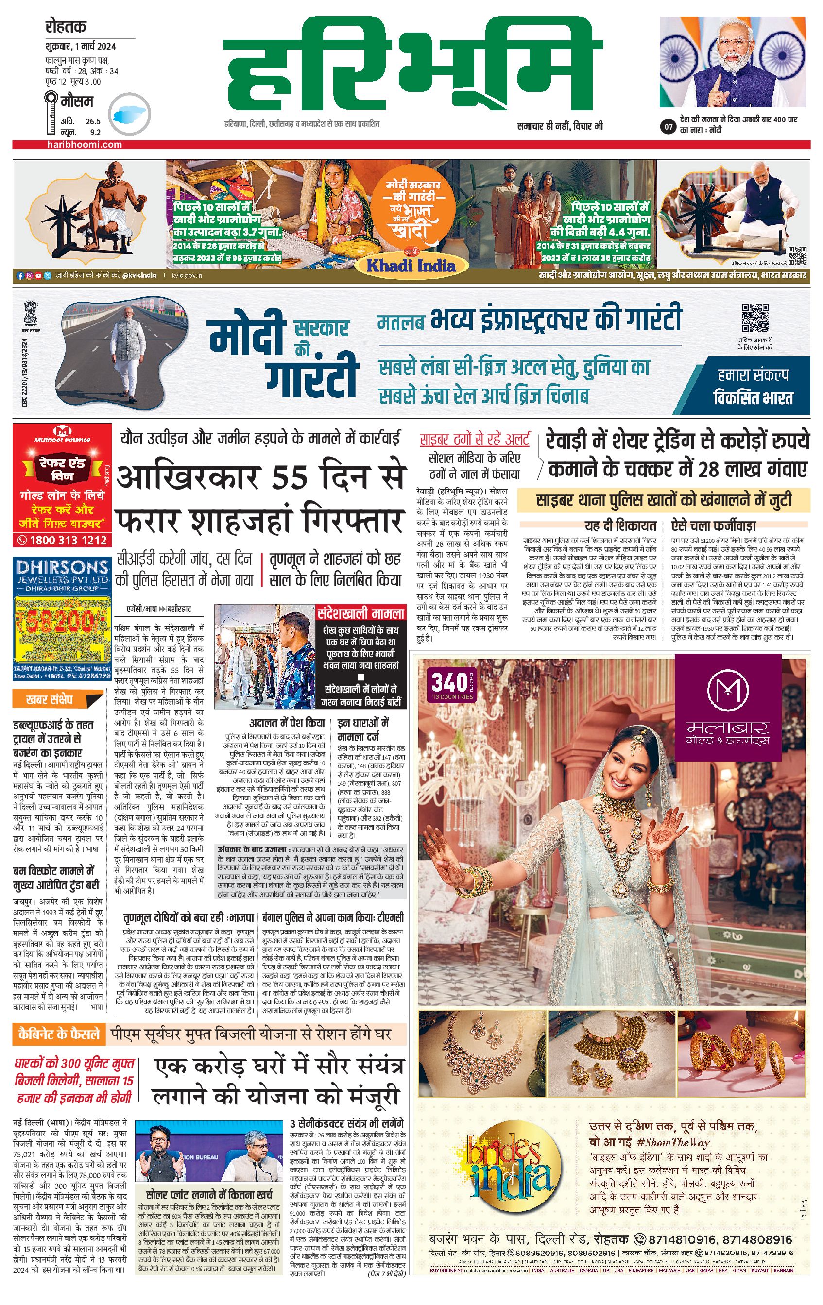रोहतक मुख्य संस्करण - 01 Mar 2024 - - Page 1