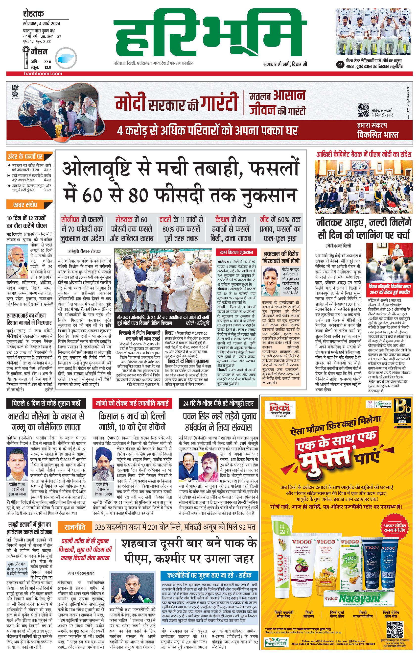 रोहतक मुख्य संस्करण - 04 Mar 2024 - - Page 1