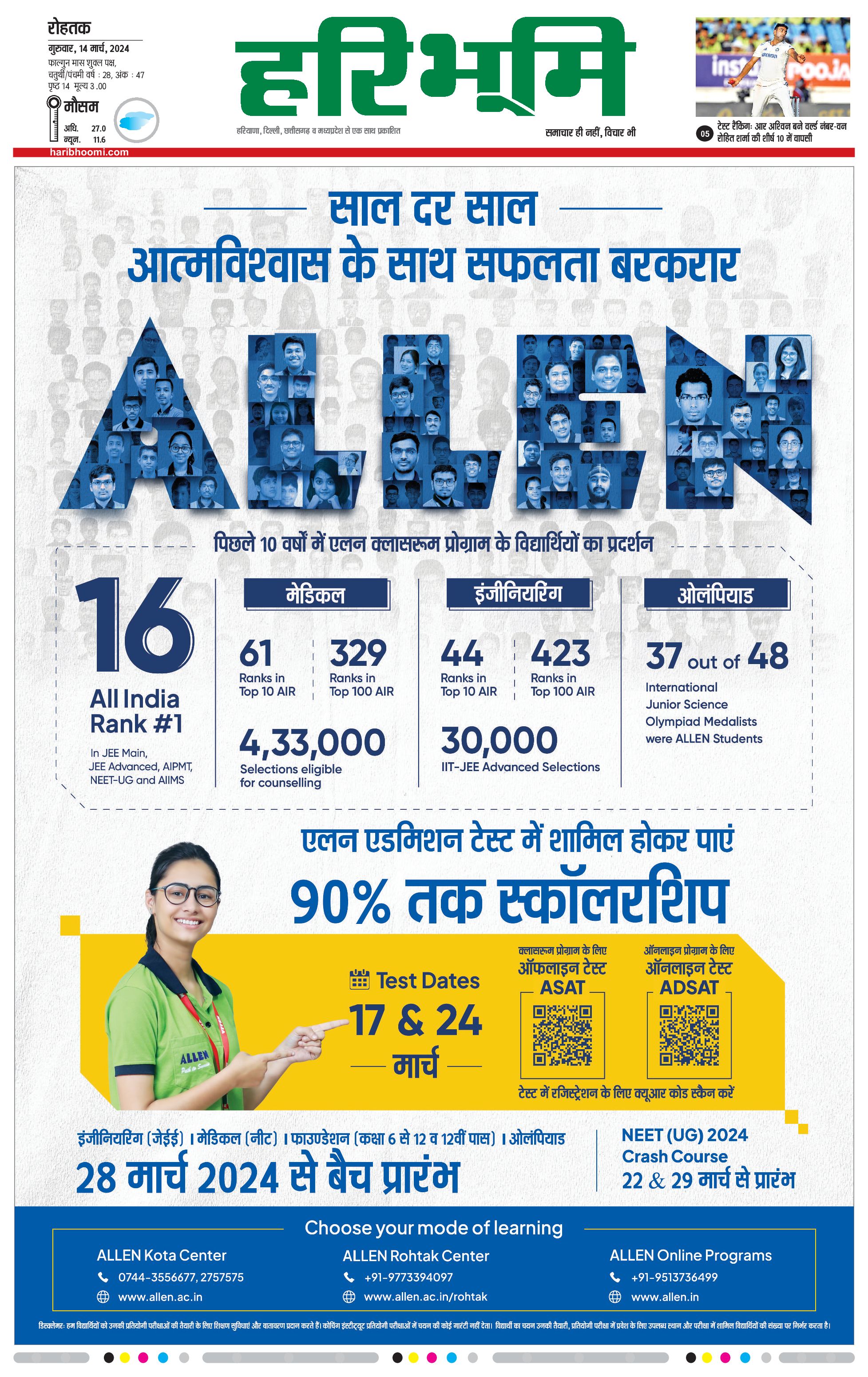 रोहतक मुख्य संस्करण - 14 Mar 2024 - - Page 1