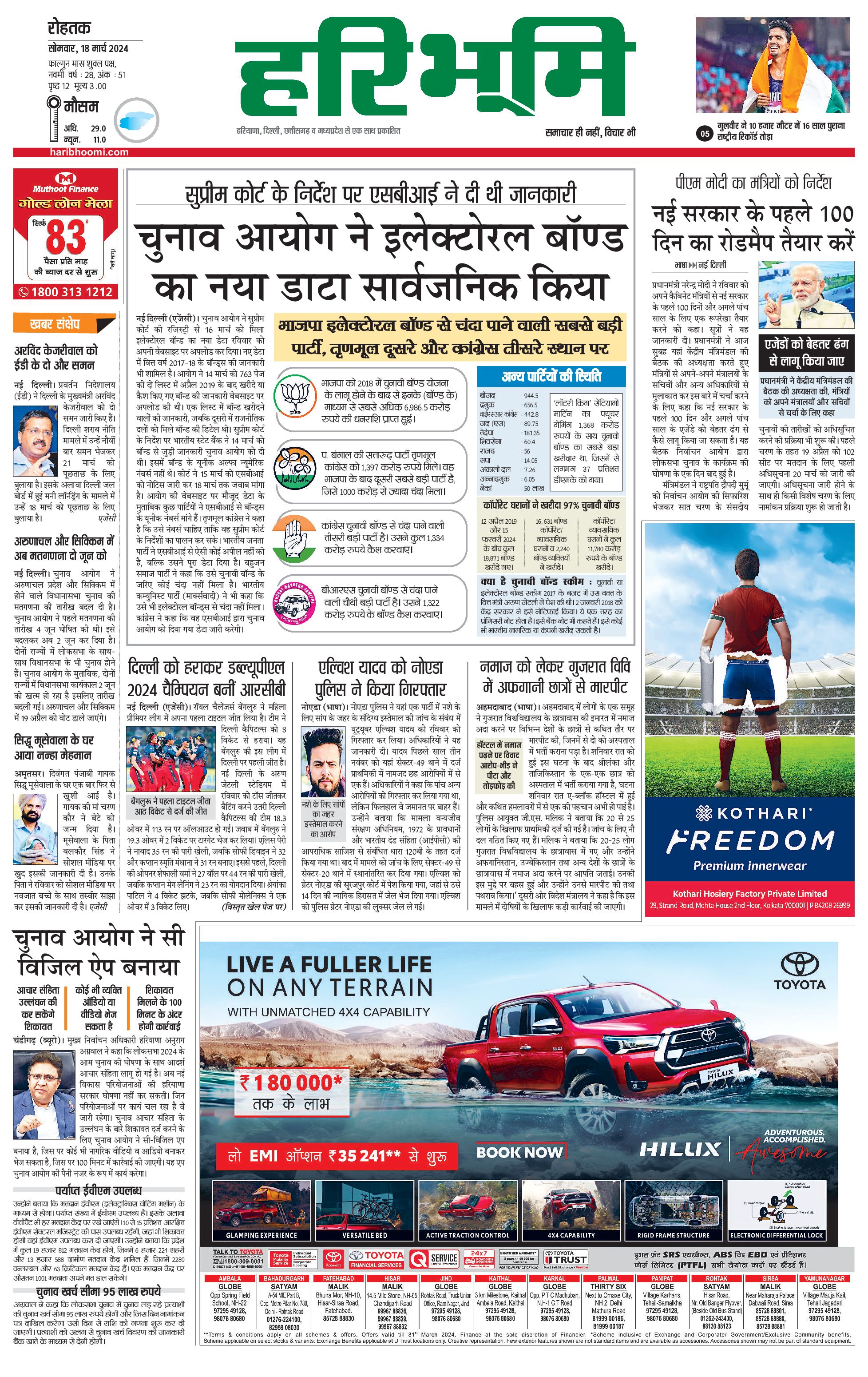 रोहतक मुख्य संस्करण - 18 Mar 2024 - - Page 1