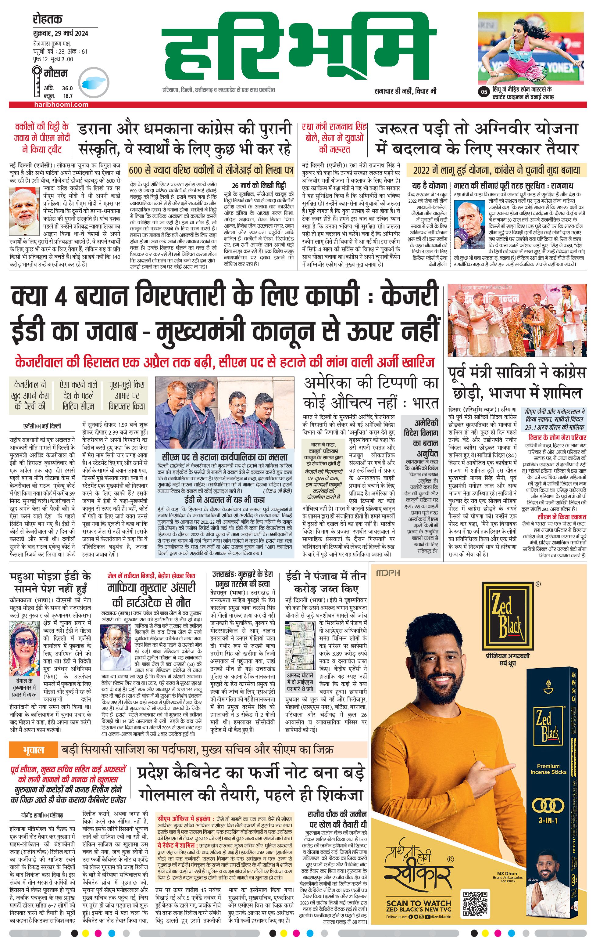 रोहतक मुख्य संस्करण - 29 Mar 2024 - - Page 1