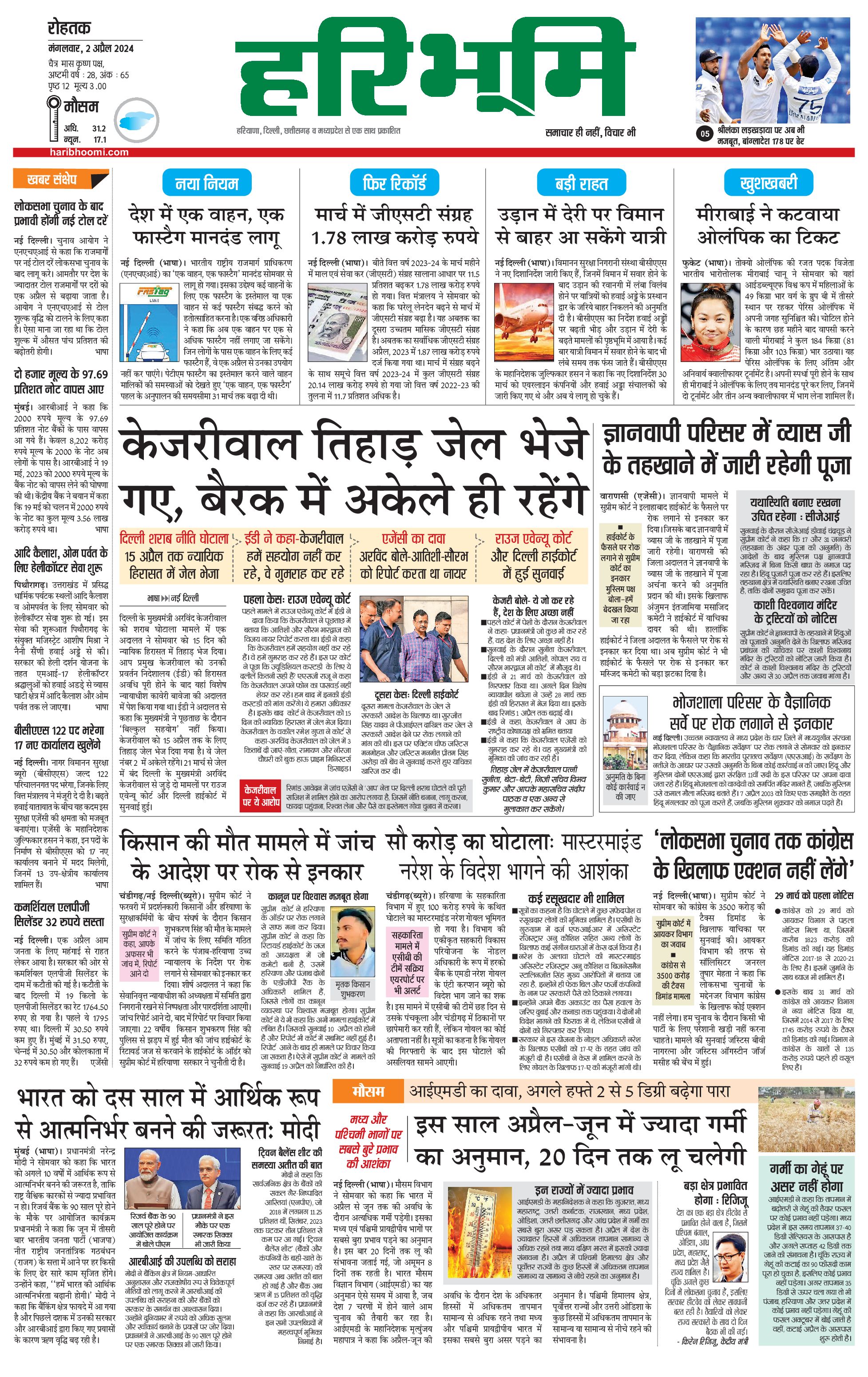 रोहतक मुख्य संस्करण - 02 Apr 2024 - - Page 1