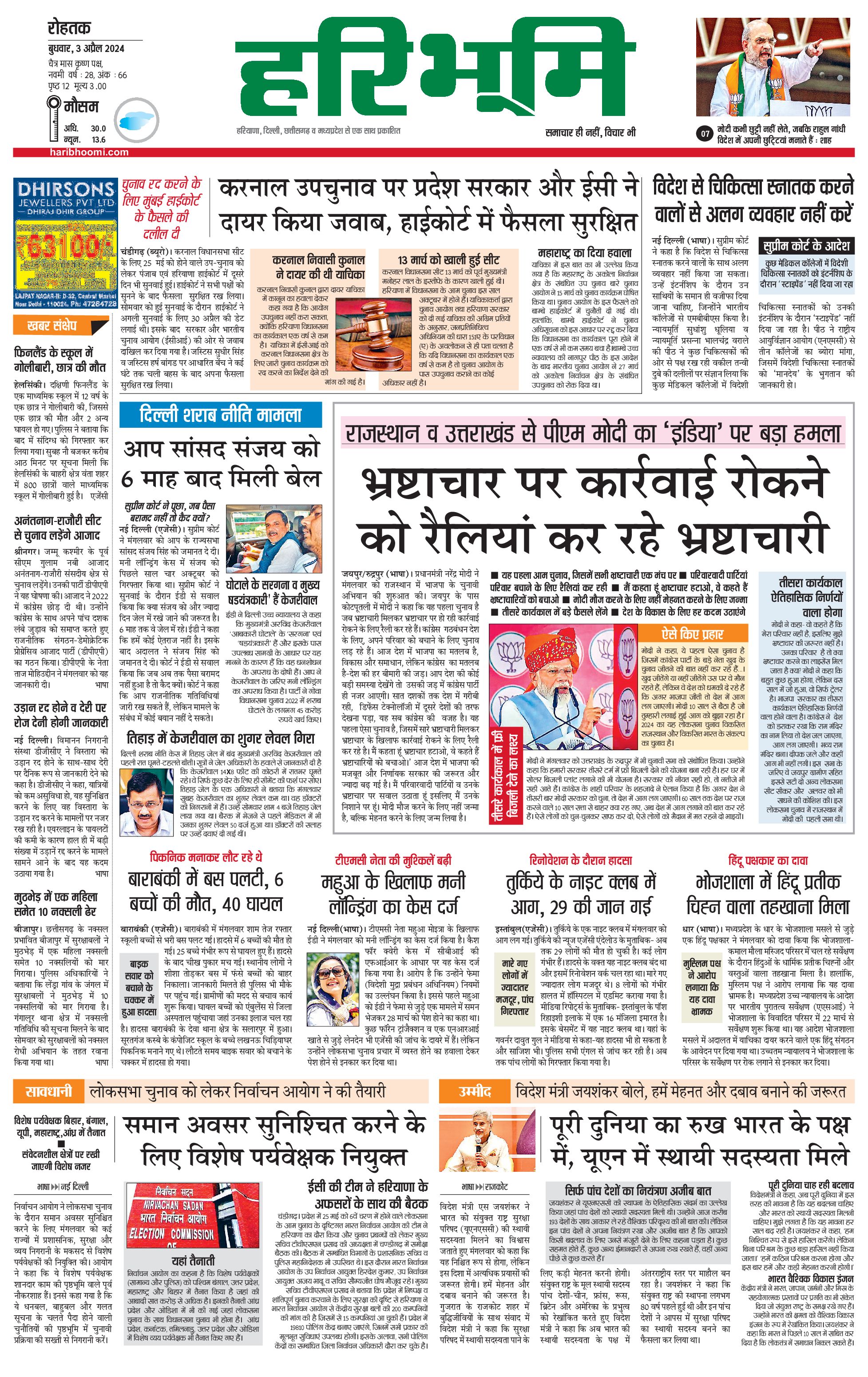 रोहतक मुख्य संस्करण - 03 Apr 2024 - - Page 1
