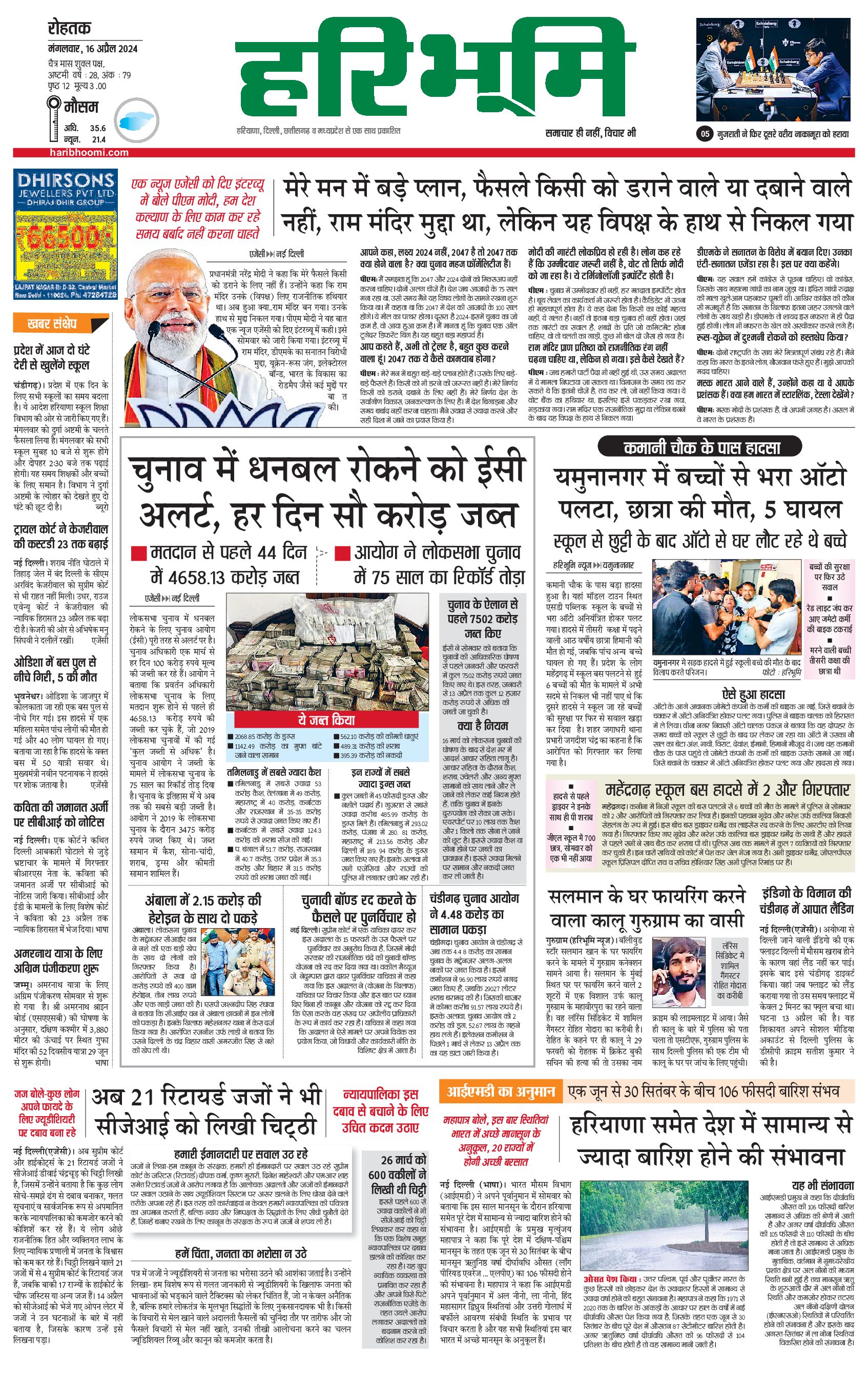 रोहतक मुख्य संस्करण - 16 Apr 2024 - - Page 1
