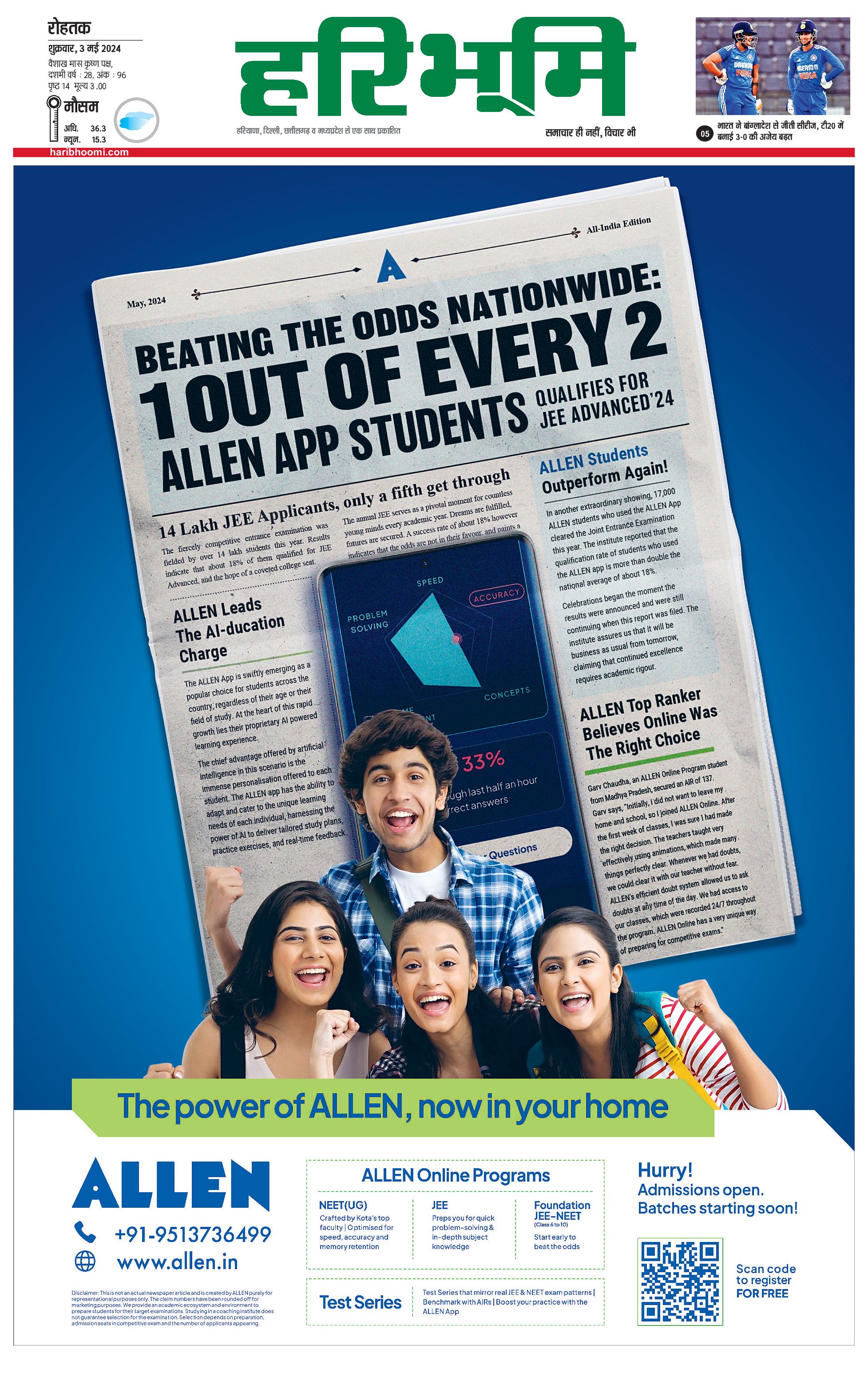 रोहतक मुख्य संस्करण - 03 May 2024 - - Page 1