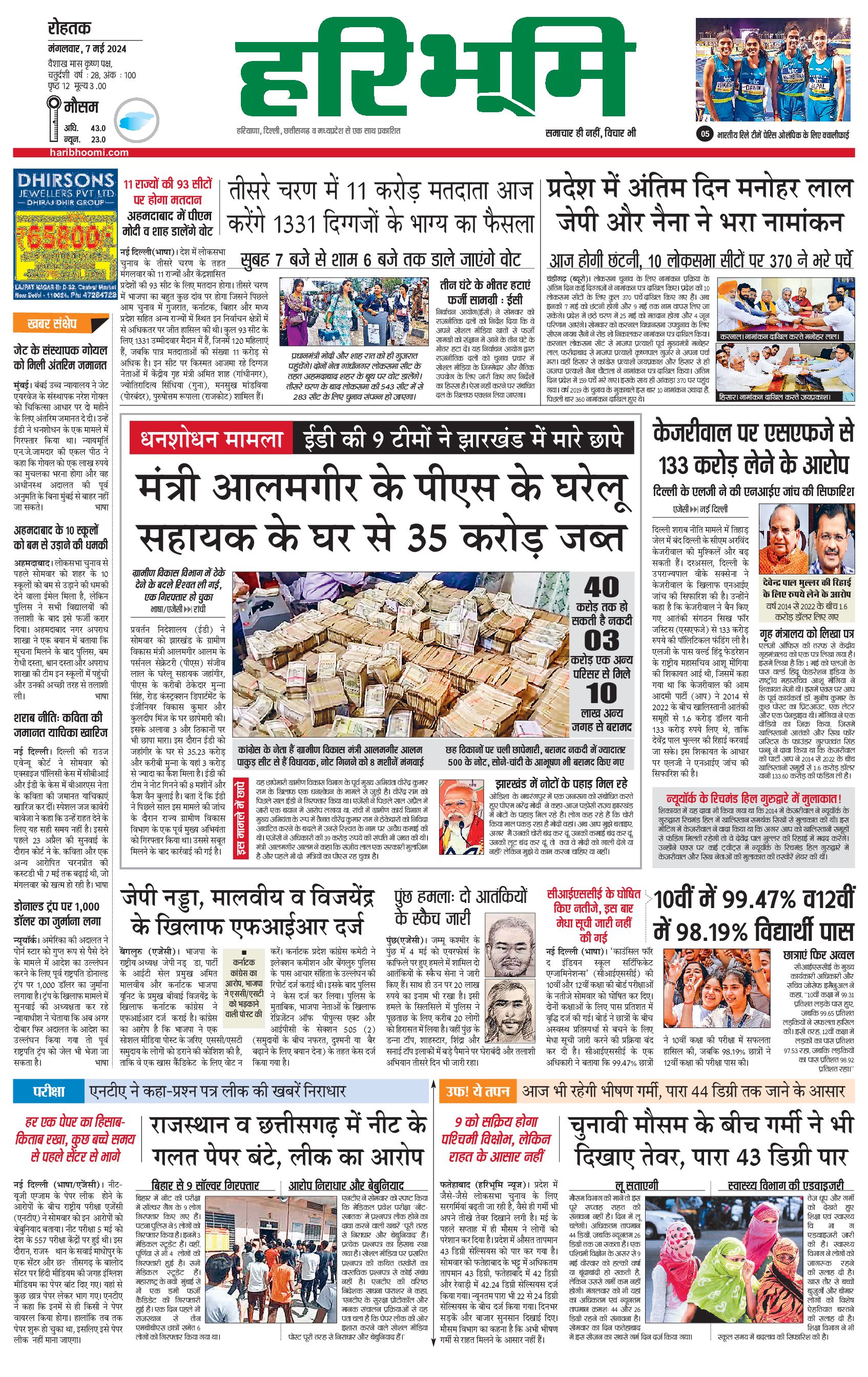रोहतक मुख्य संस्करण - 07 May 2024 - - Page 1