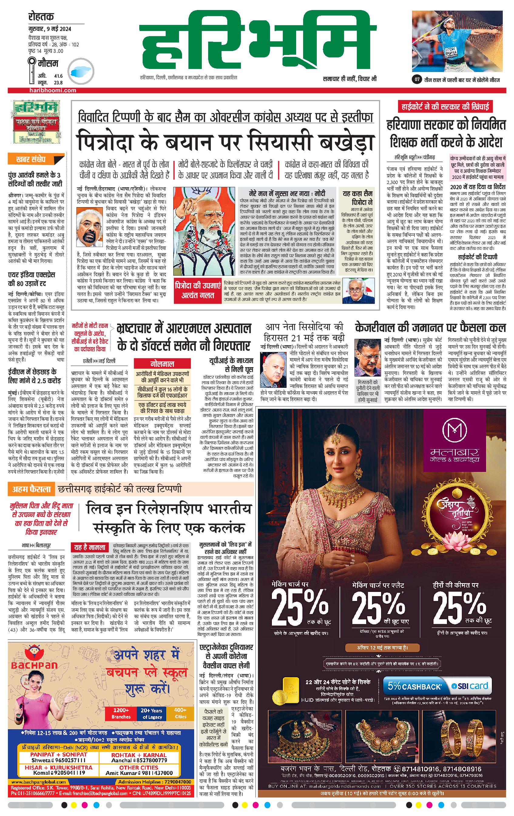 रोहतक मुख्य संस्करण - 09 May 2024 - - Page 1