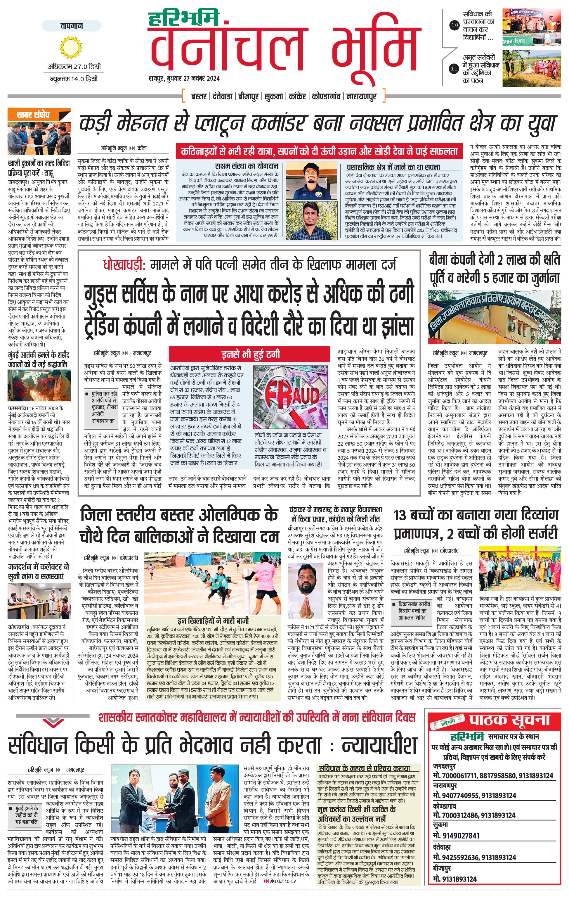 वनांचल भूमि - 27 Nov 2024 - - Page 1