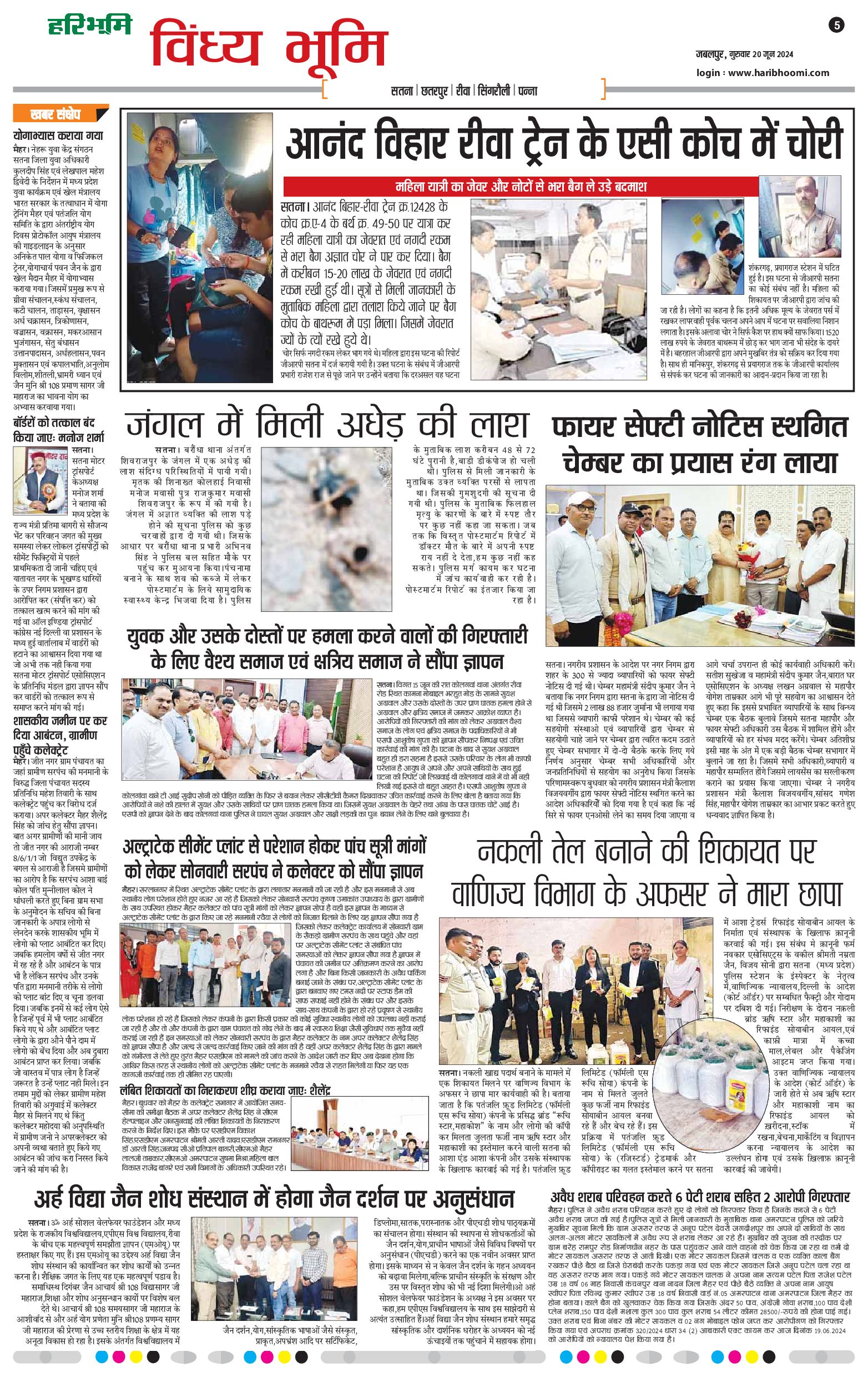 विंध्य भूमि - 20 Jun 2024 - - Page 1
