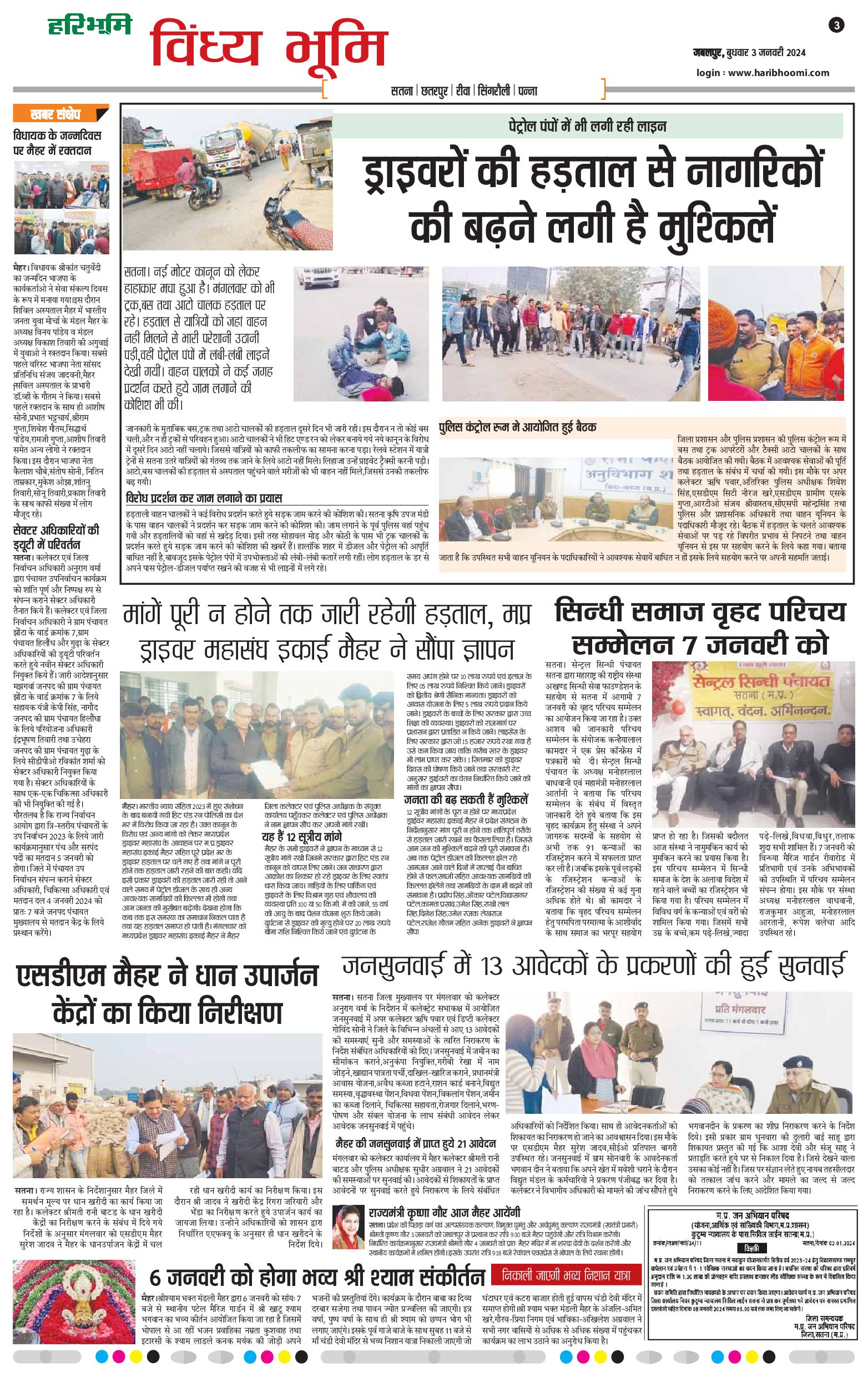 विंध्य भूमि - 03 Jan 2024 - - Page 1
