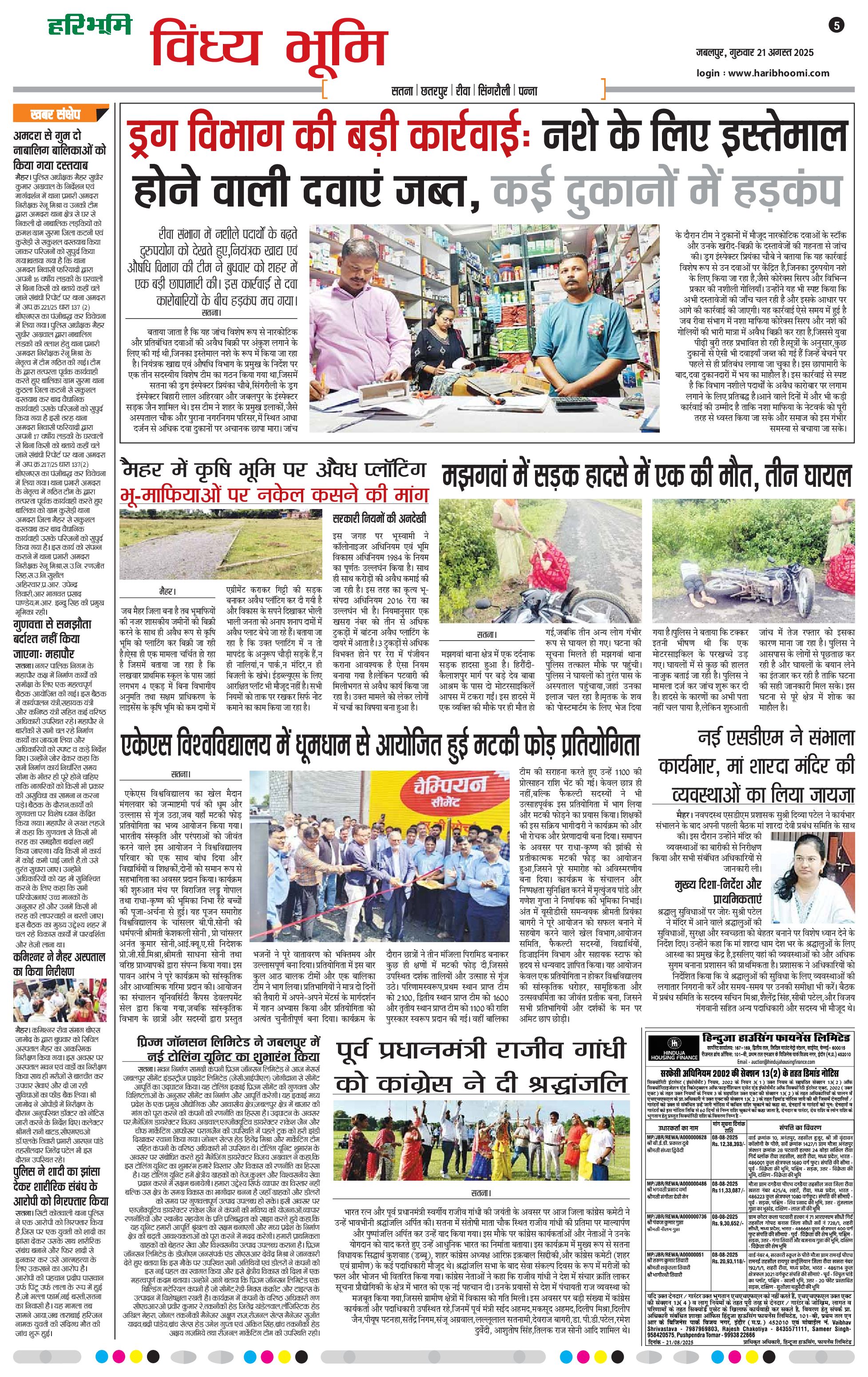 विंध्य भूमि - 21 Aug 2025 - - Page 1