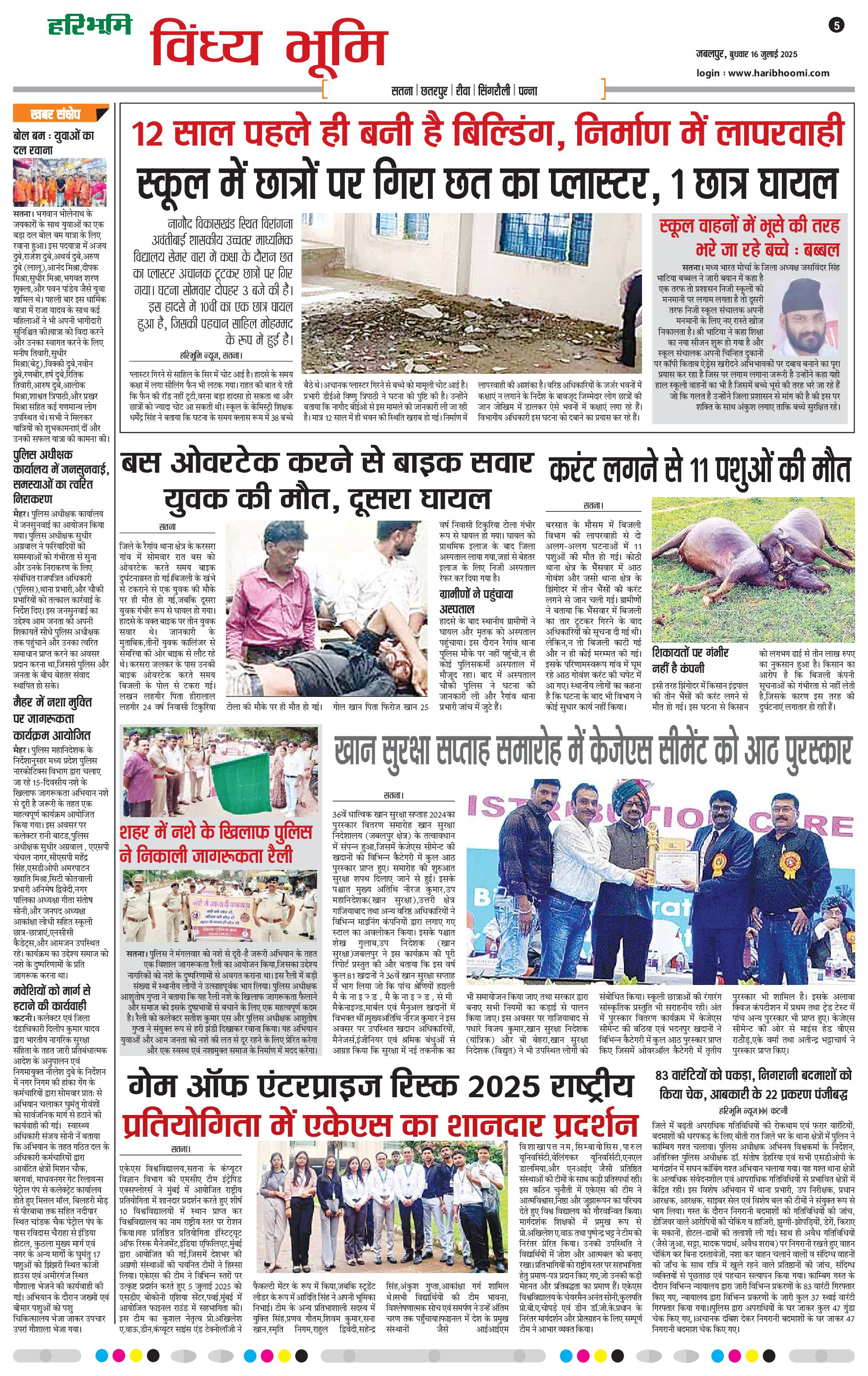 विंध्य भूमि - 16 Jul 2025 - - Page 1
