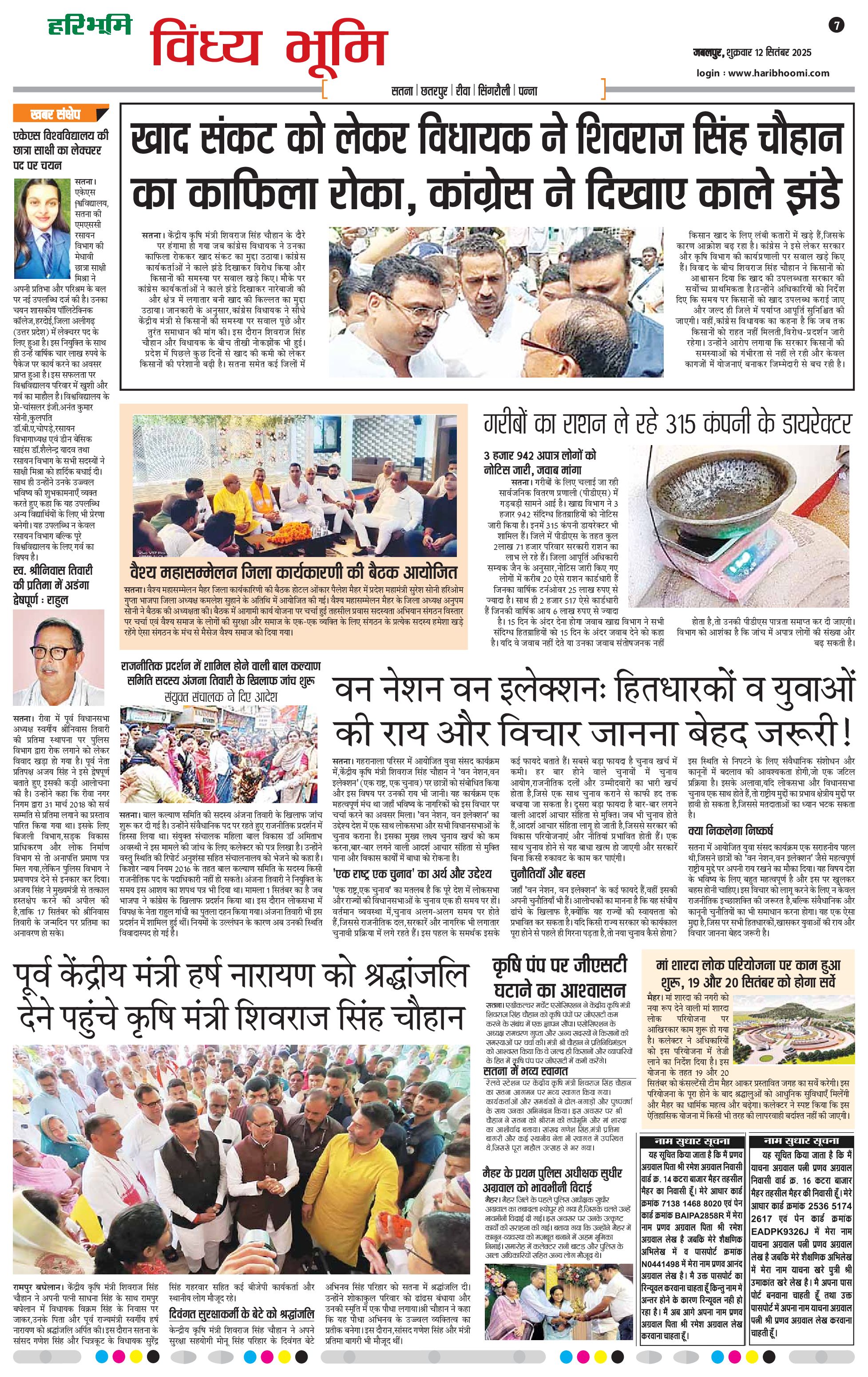 विंध्य भूमि - 12 Sep 2025 - - Page 1