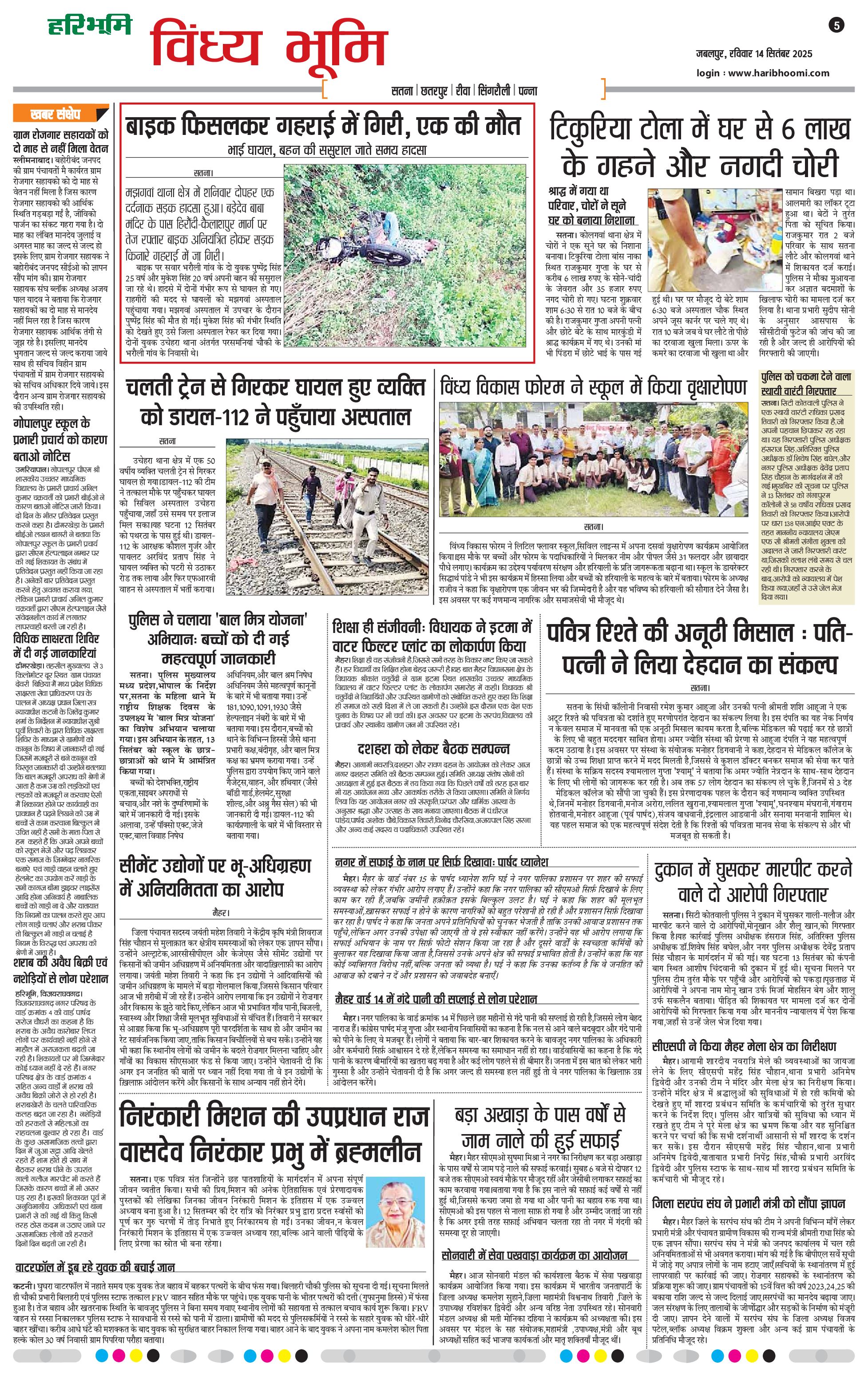 विंध्य भूमि - 14 Sep 2025 - - Page 1