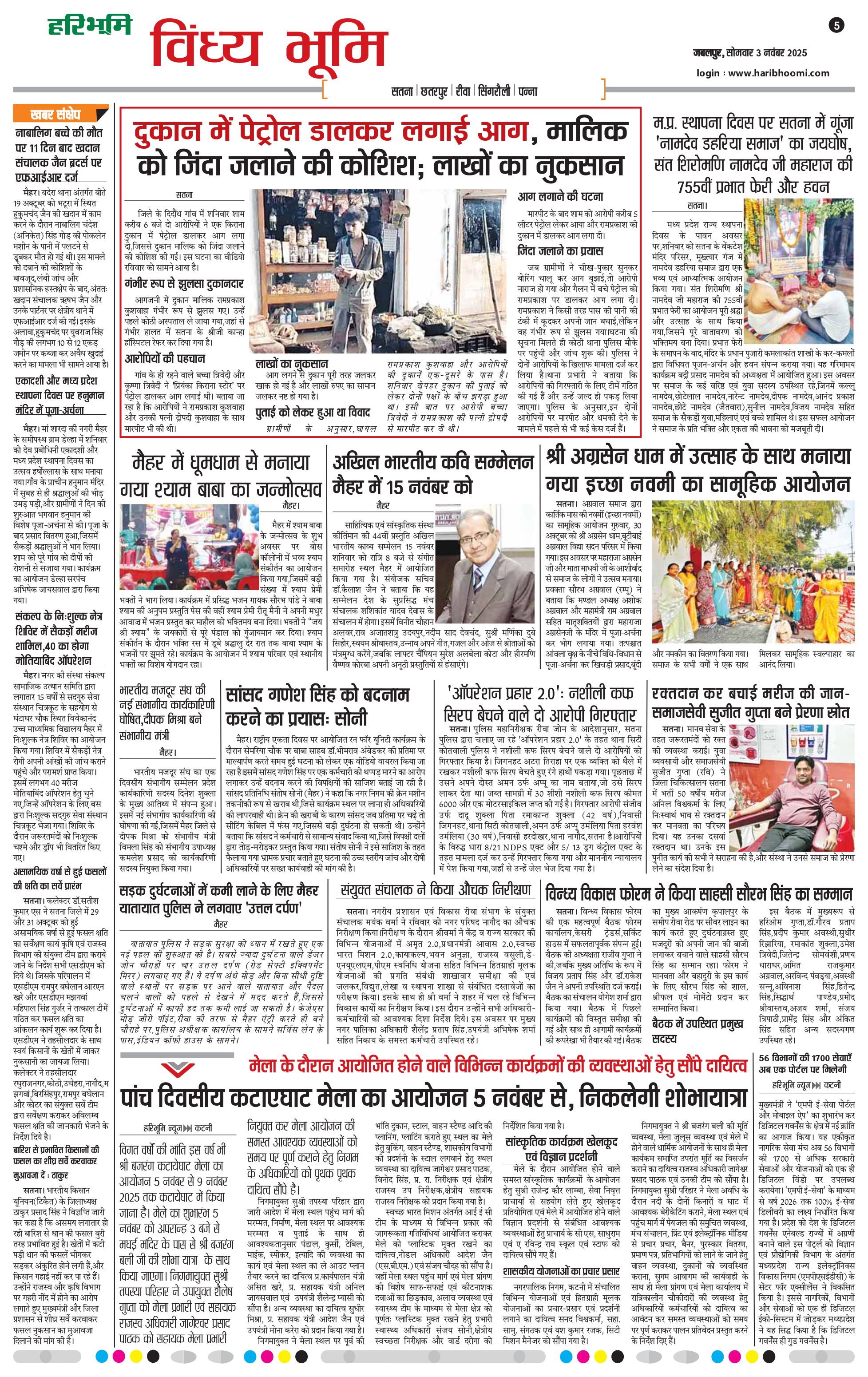 विंध्य भूमि - 03 Nov 2025 - - Page 1