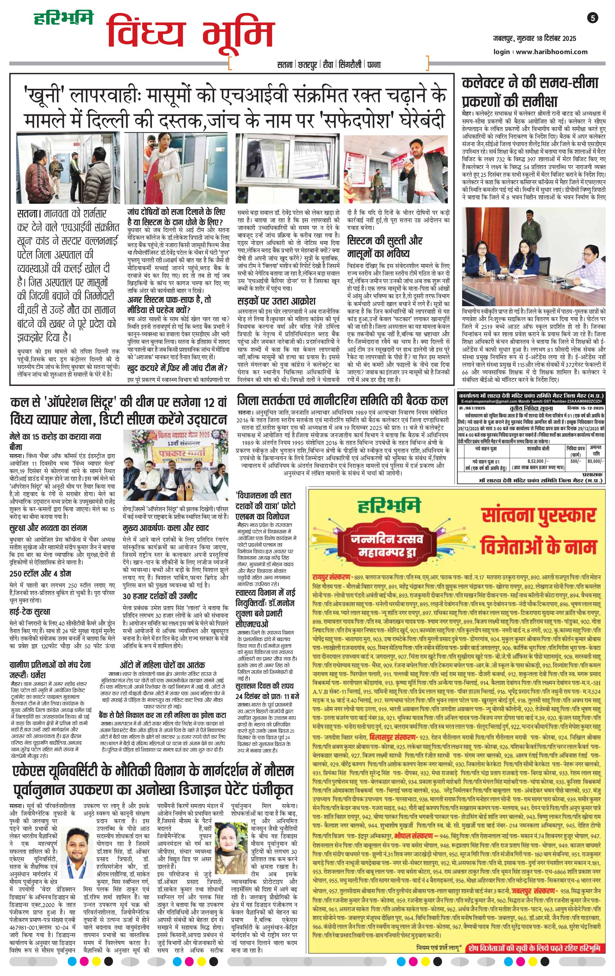 विंध्य भूमि - 18 Dec 2025 - - Page 1