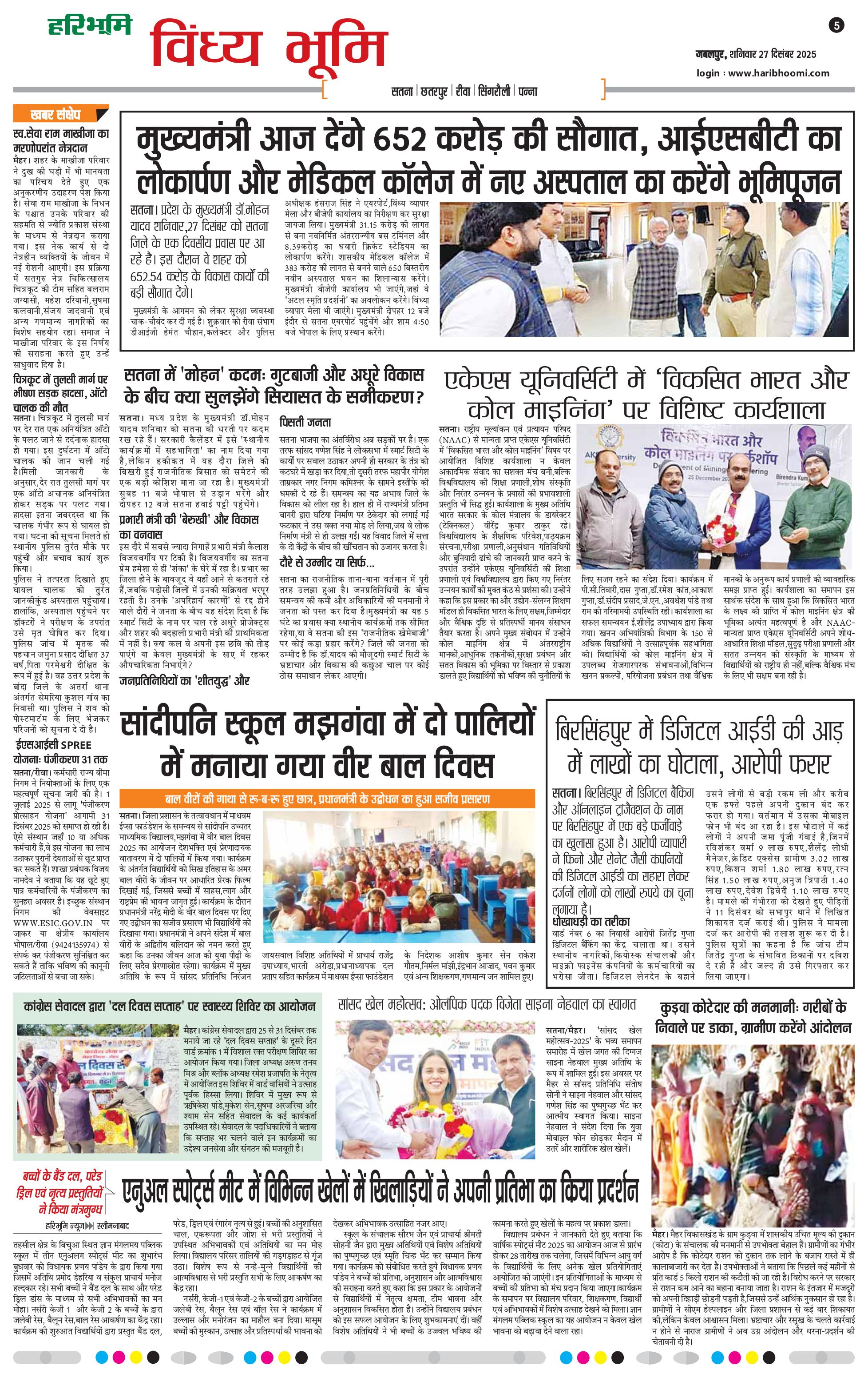 विंध्य भूमि - 27 Dec 2025 - - Page 1