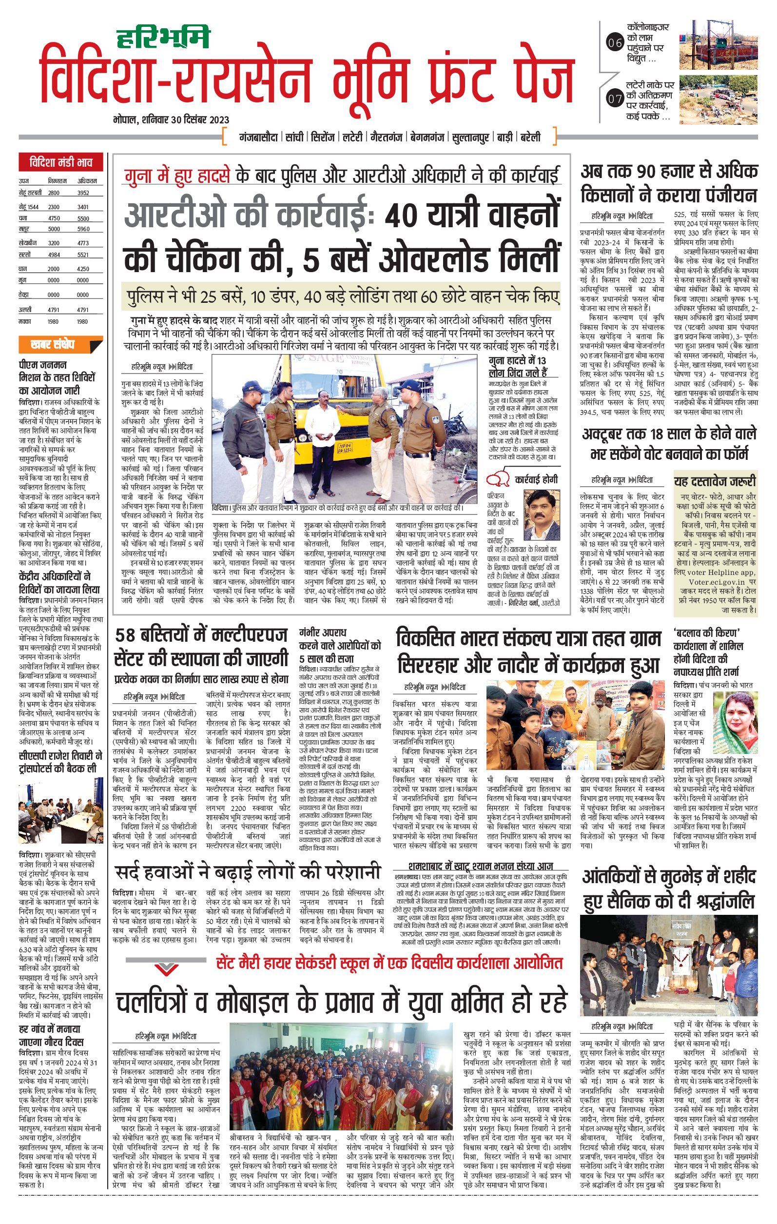 विदिशा- रायसेन भूमि - 30 Dec 2023 - - Page 1