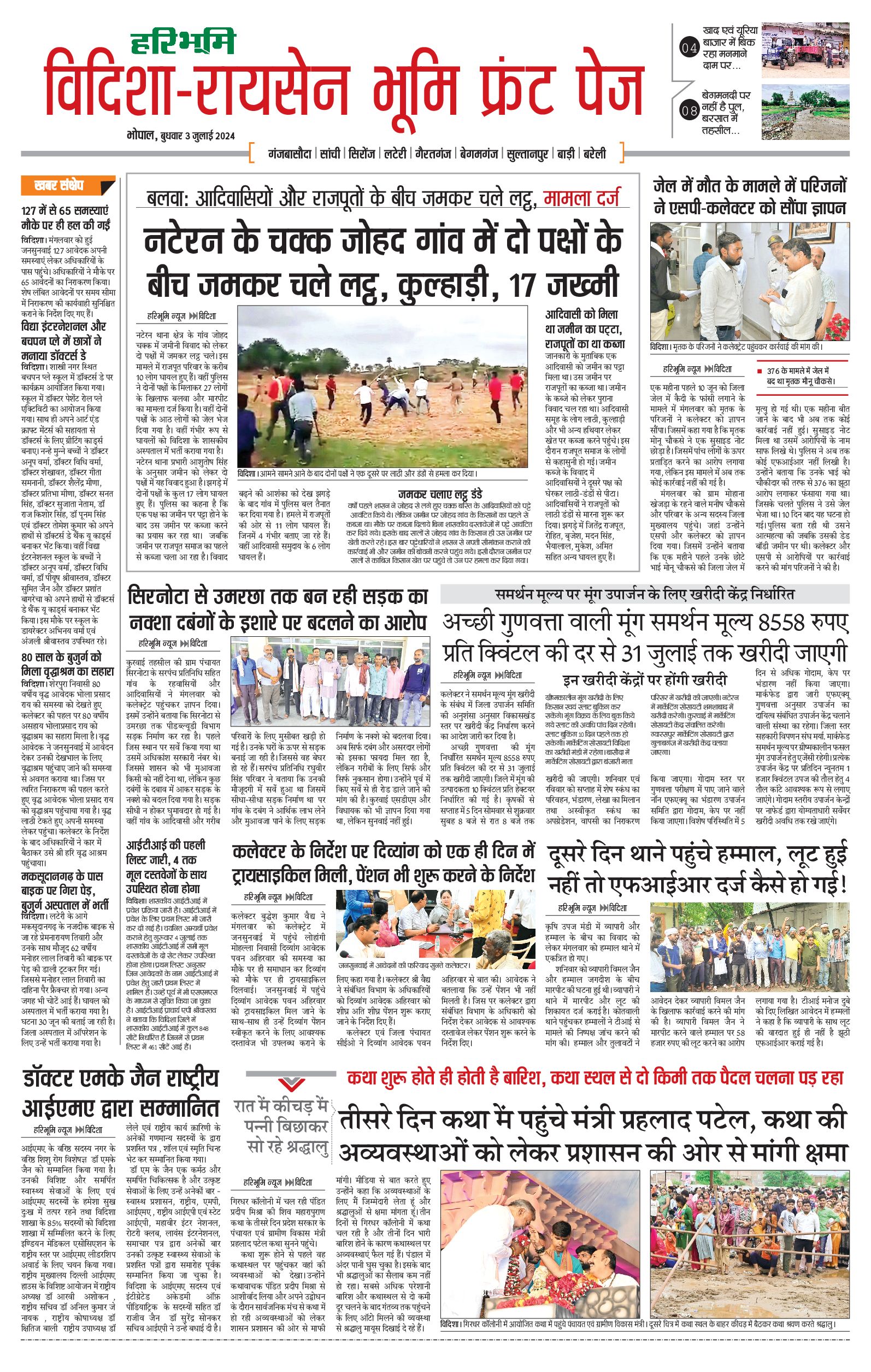 विदिशा- रायसेन भूमि - 03 Jul 2024 - - Page 1