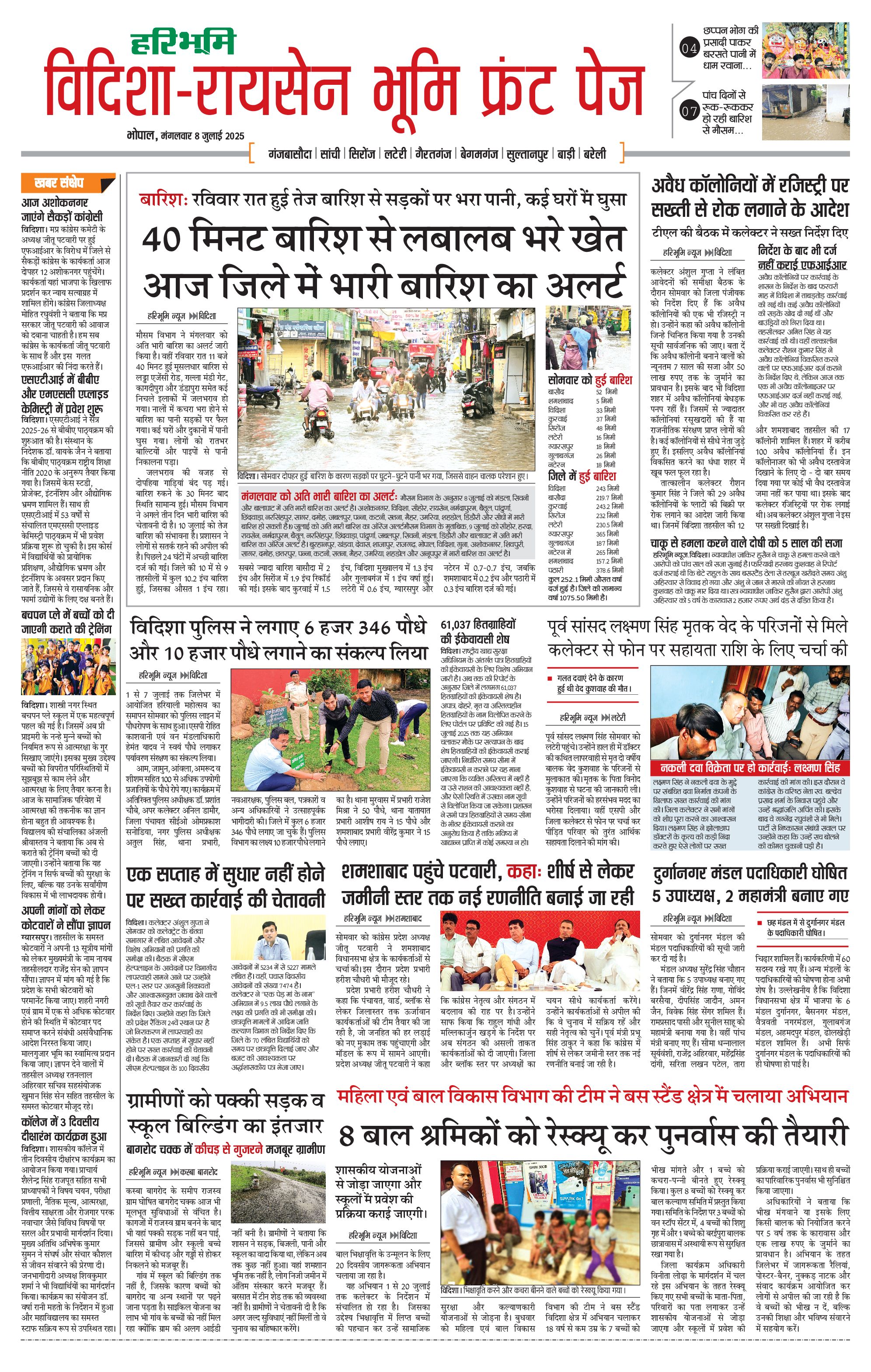 विदिशा- रायसेन भूमि - 08 Jul 2025 - - Page 1
