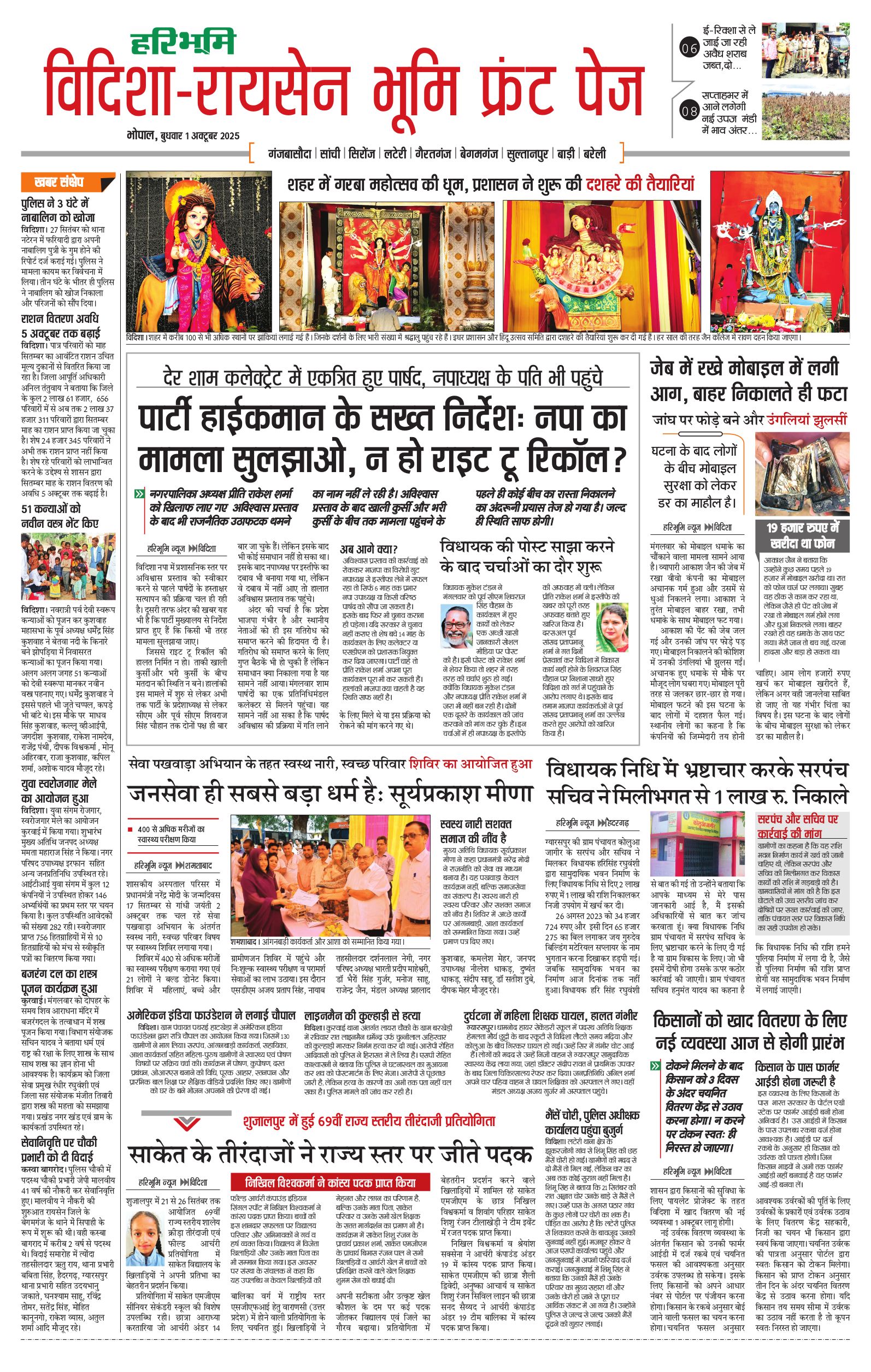 विदिशा- रायसेन भूमि - 01 Oct 2025 - - Page 1