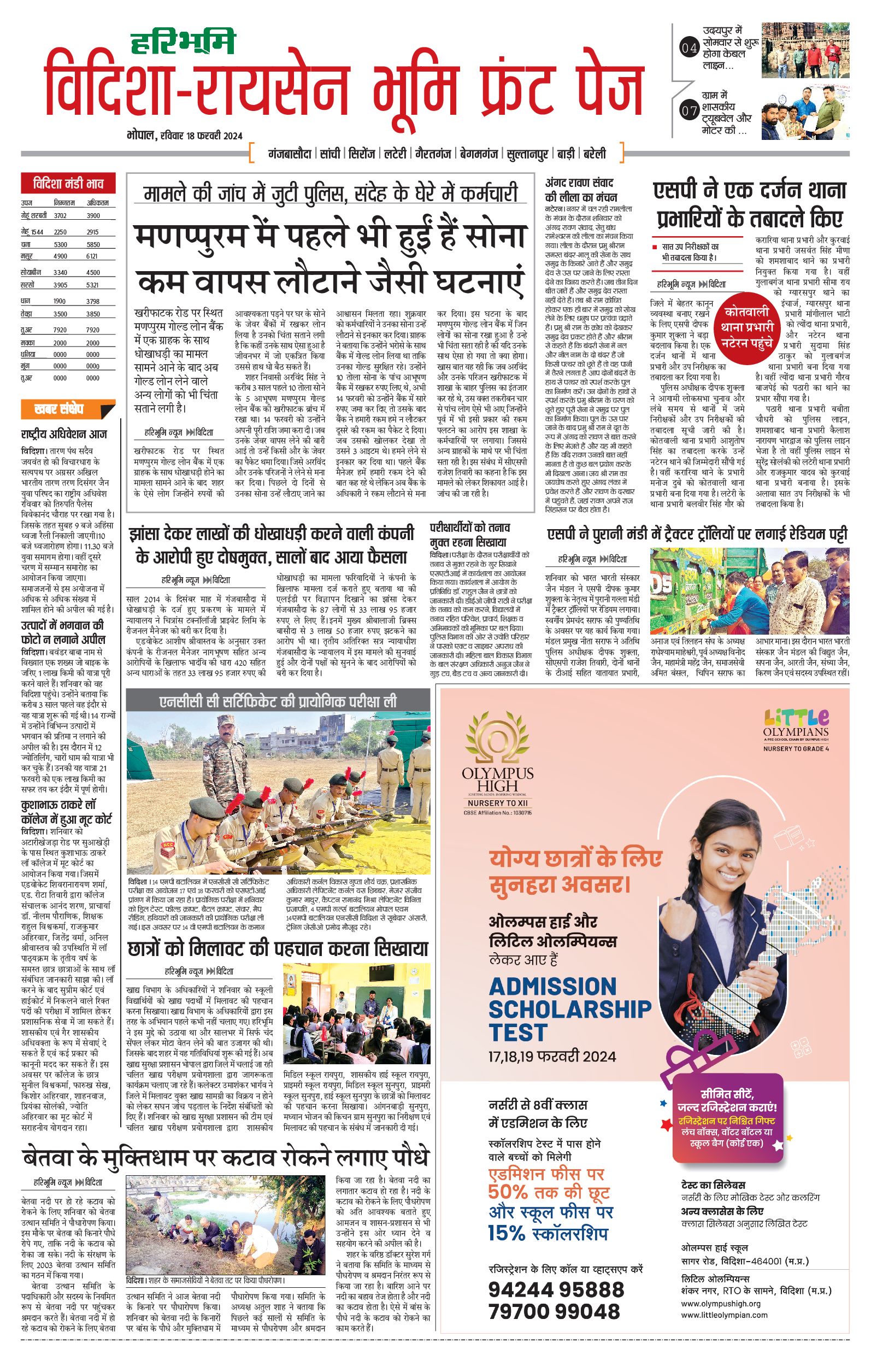 विदिशा- रायसेन भूमि - 18 Feb 2024 - - Page 1