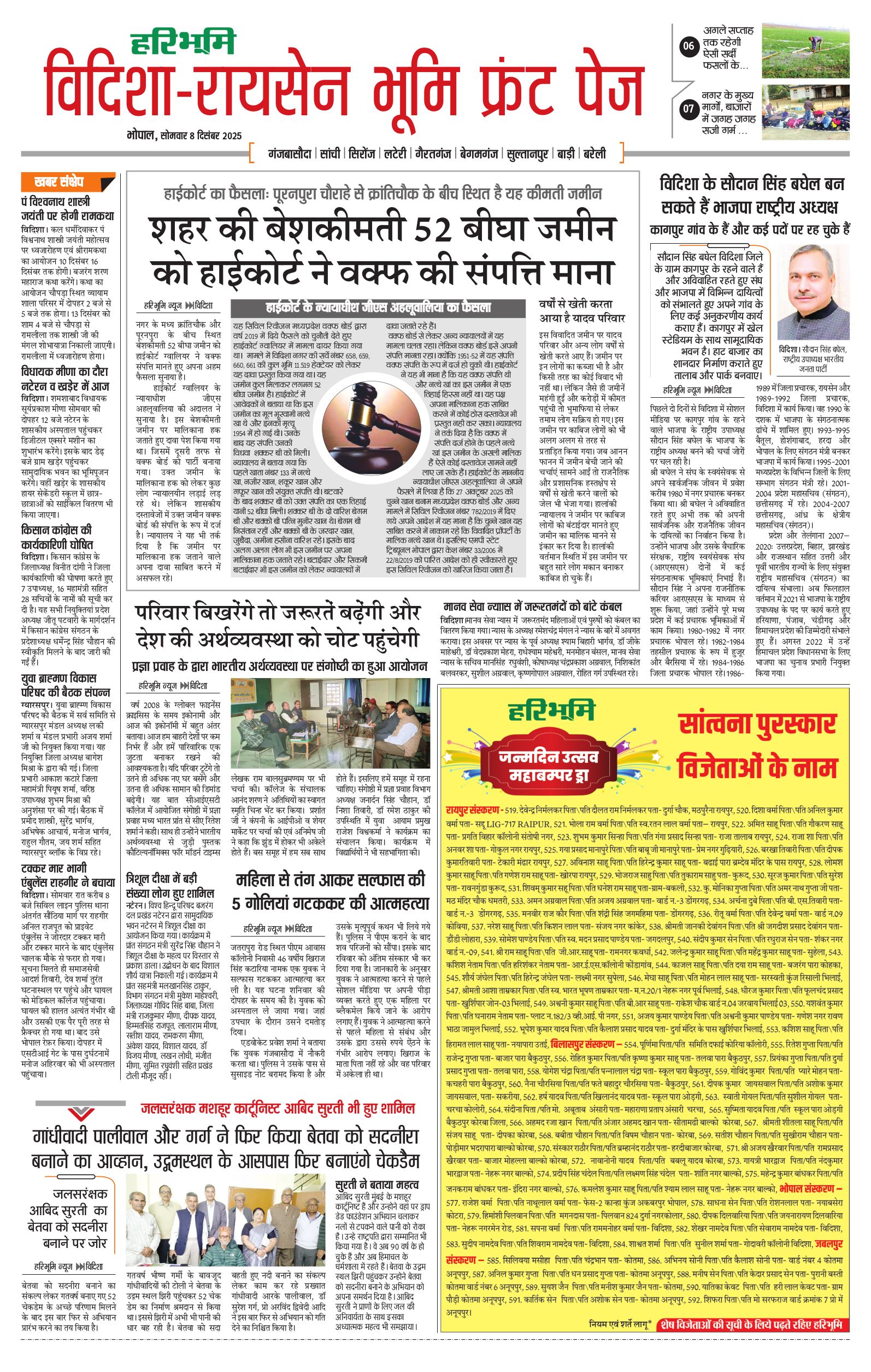 विदिशा- रायसेन भूमि - 08 Dec 2025 - - Page 1