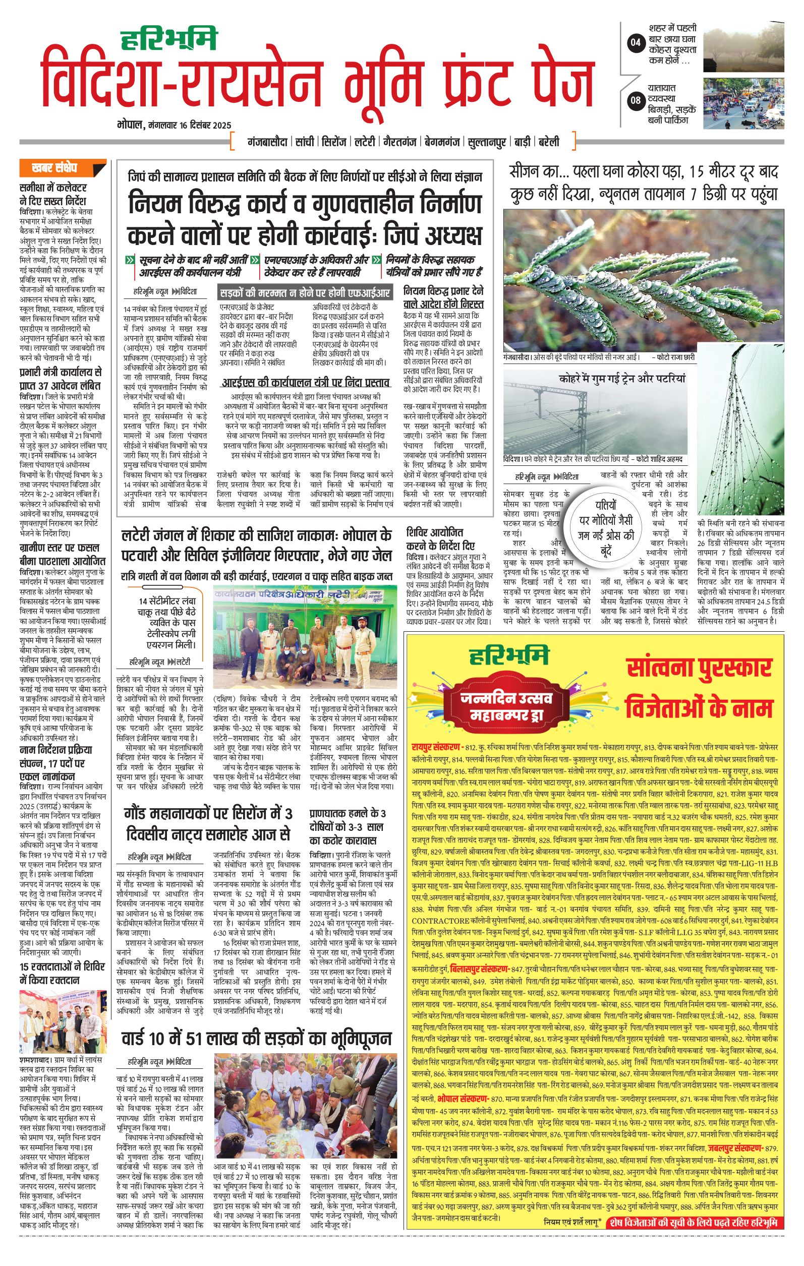 विदिशा- रायसेन भूमि - 16 Dec 2025 - - Page 1