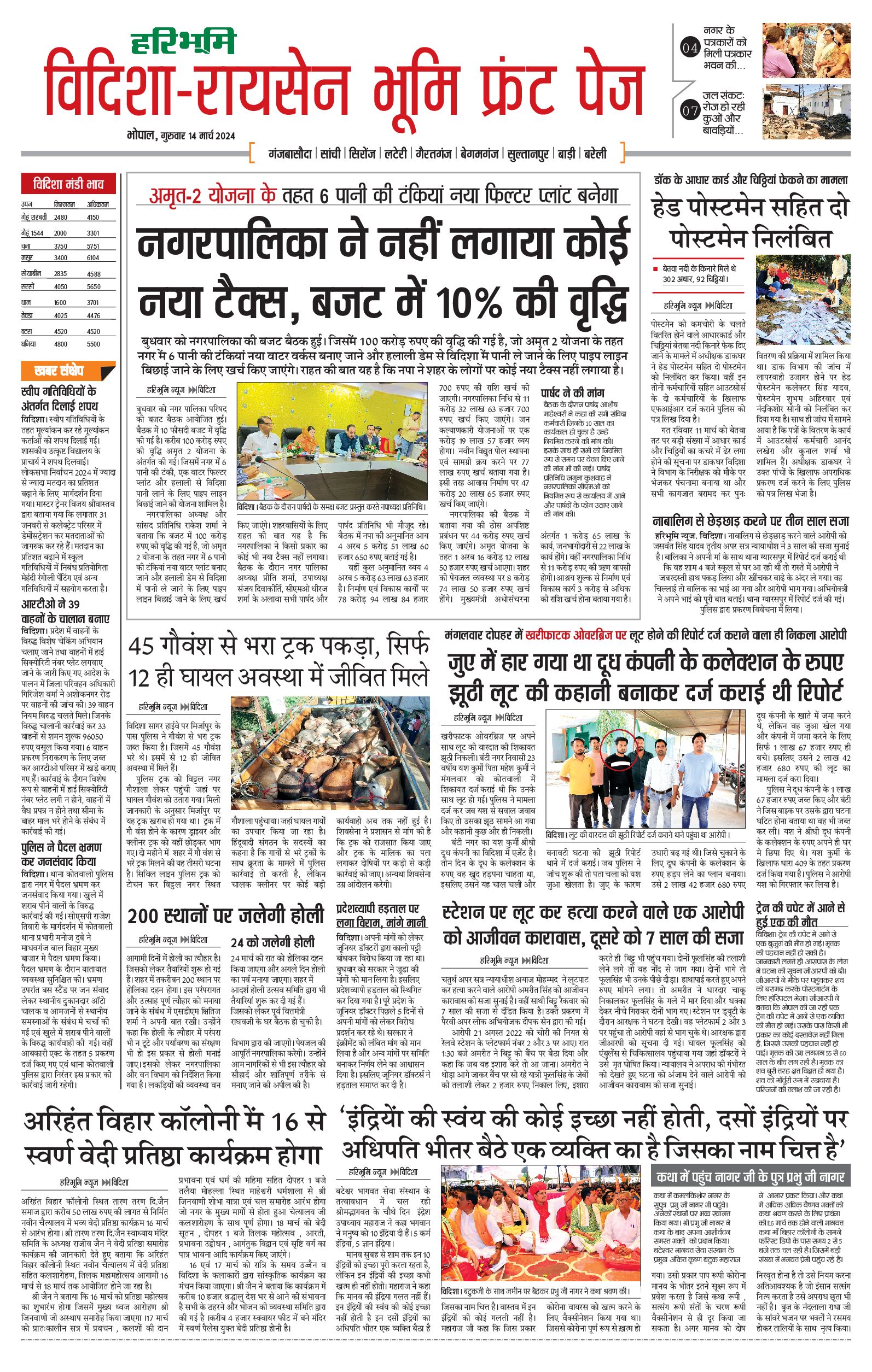 विदिशा- रायसेन भूमि - 14 Mar 2024 - - Page 1