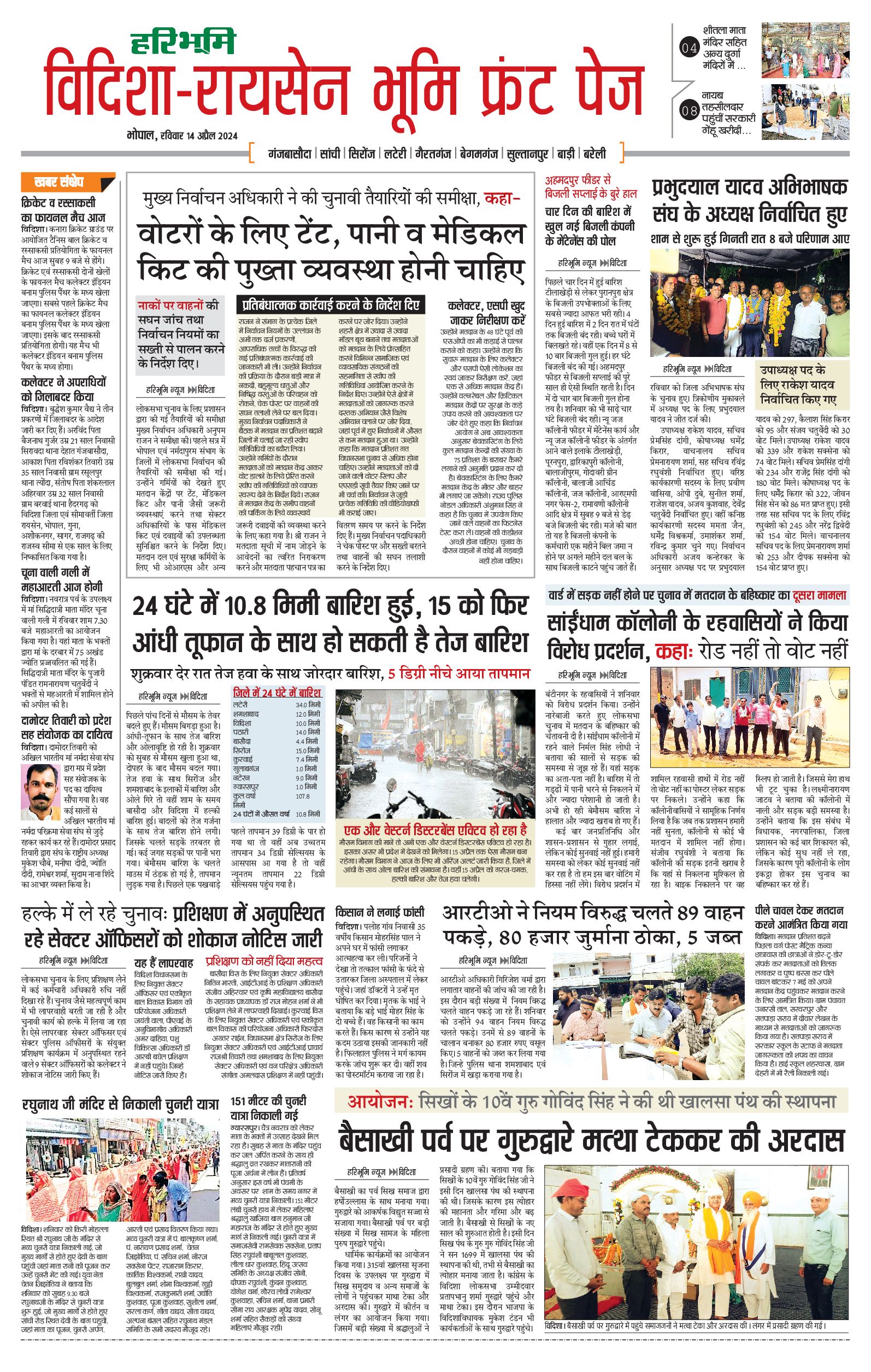 विदिशा- रायसेन भूमि - 14 Apr 2024 - - Page 1