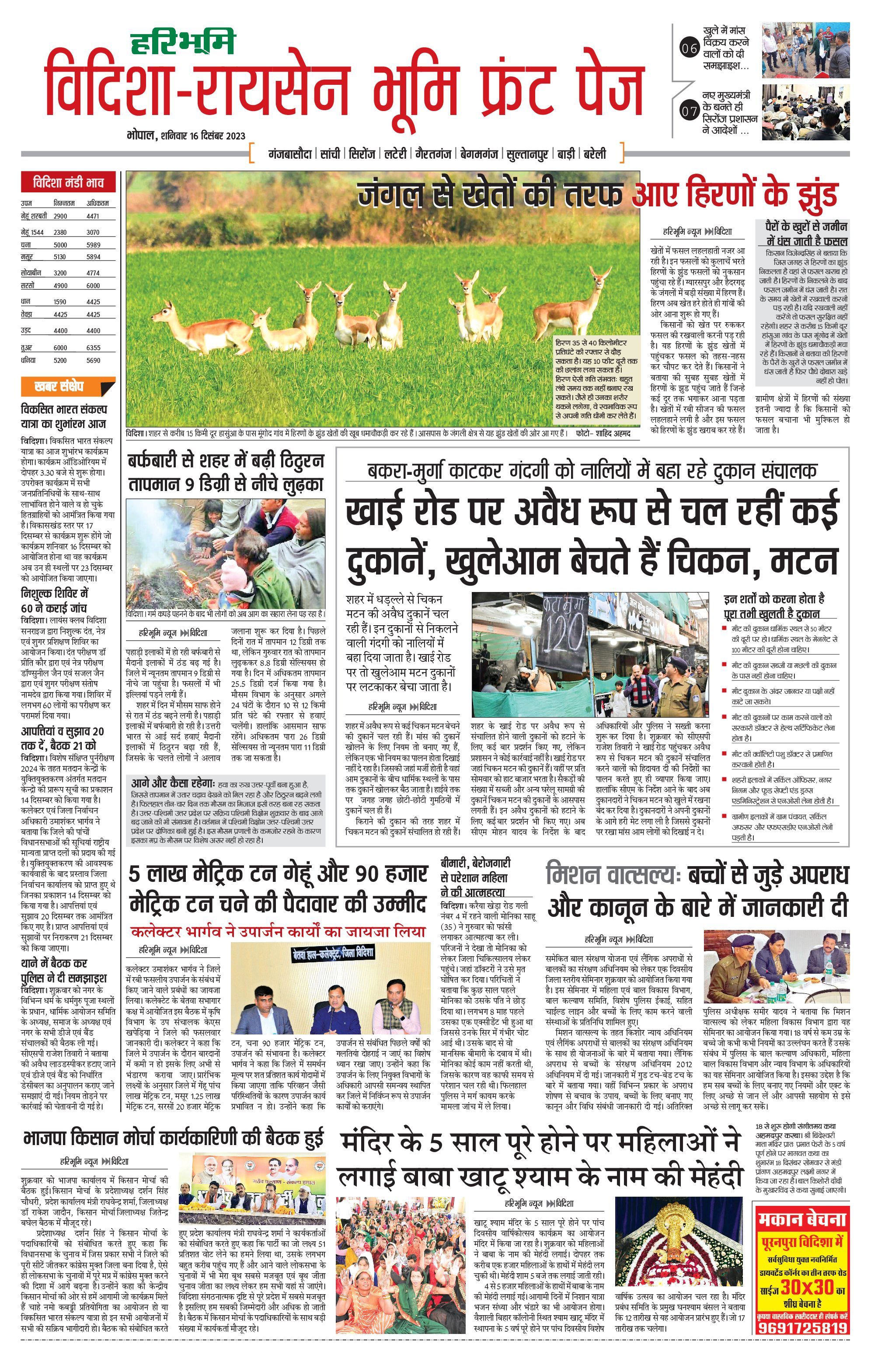 विदिशा- रायसेन भूमि - 16 Dec 2023 - - Page 1
