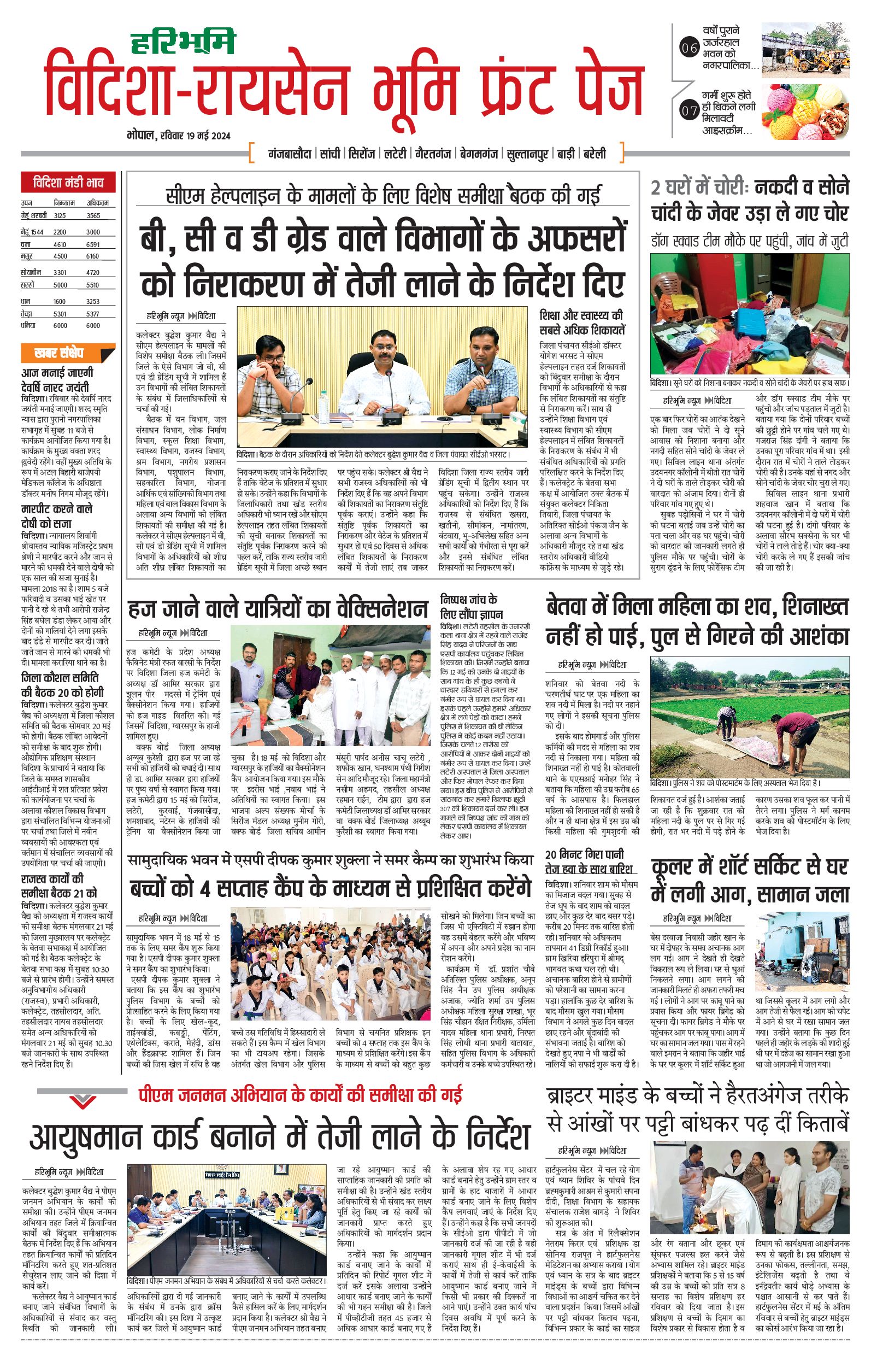 विदिशा- रायसेन भूमि - 19 May 2024 - - Page 1