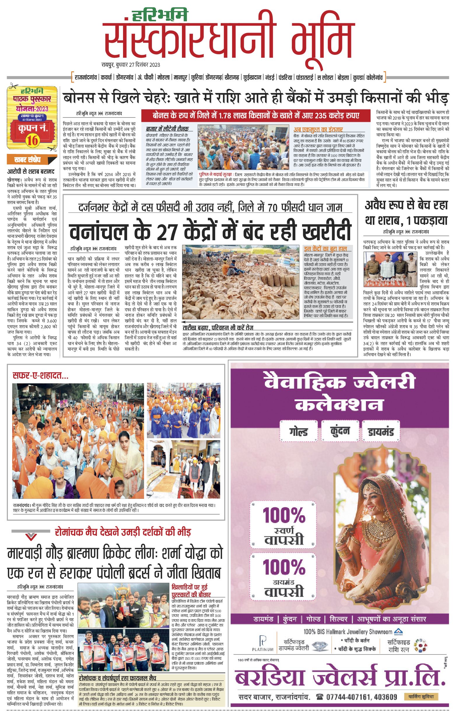 संस्कारधानी भूमि - 27 Dec 2023 - - Page 1