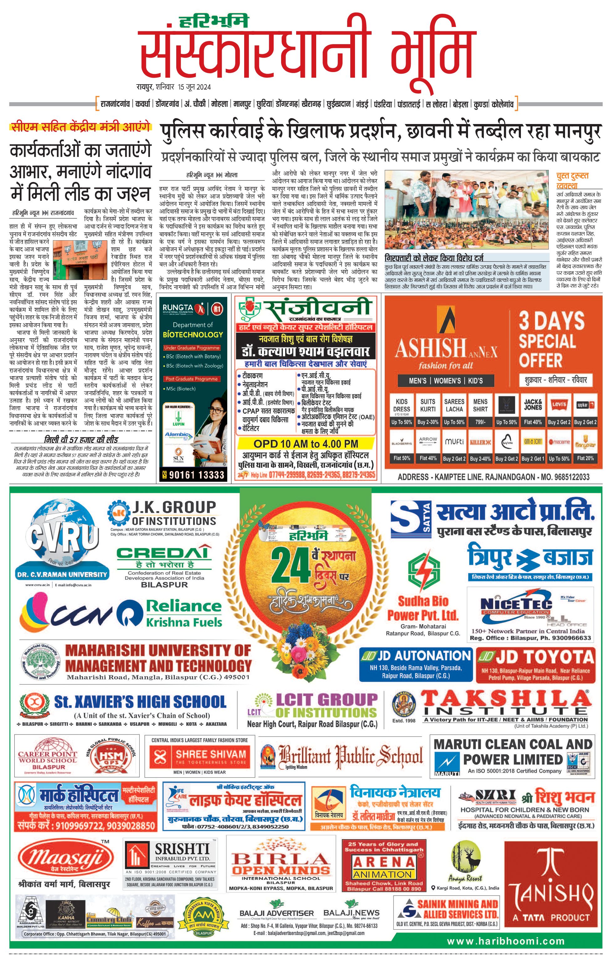 संस्कारधानी भूमि - 15 Jun 2024 - - Page 1