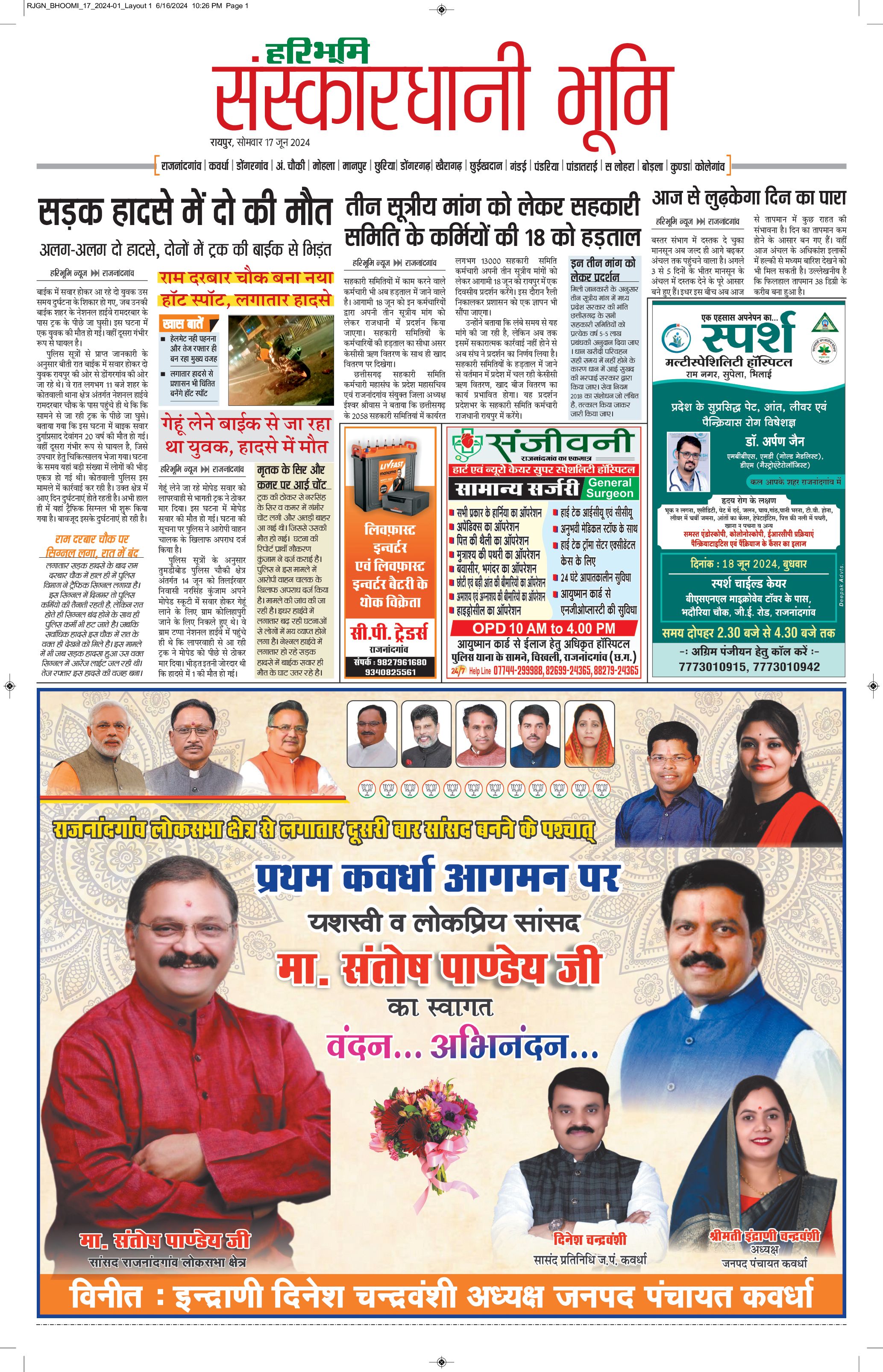 संस्कारधानी भूमि - 17 Jun 2024 - - Page 1